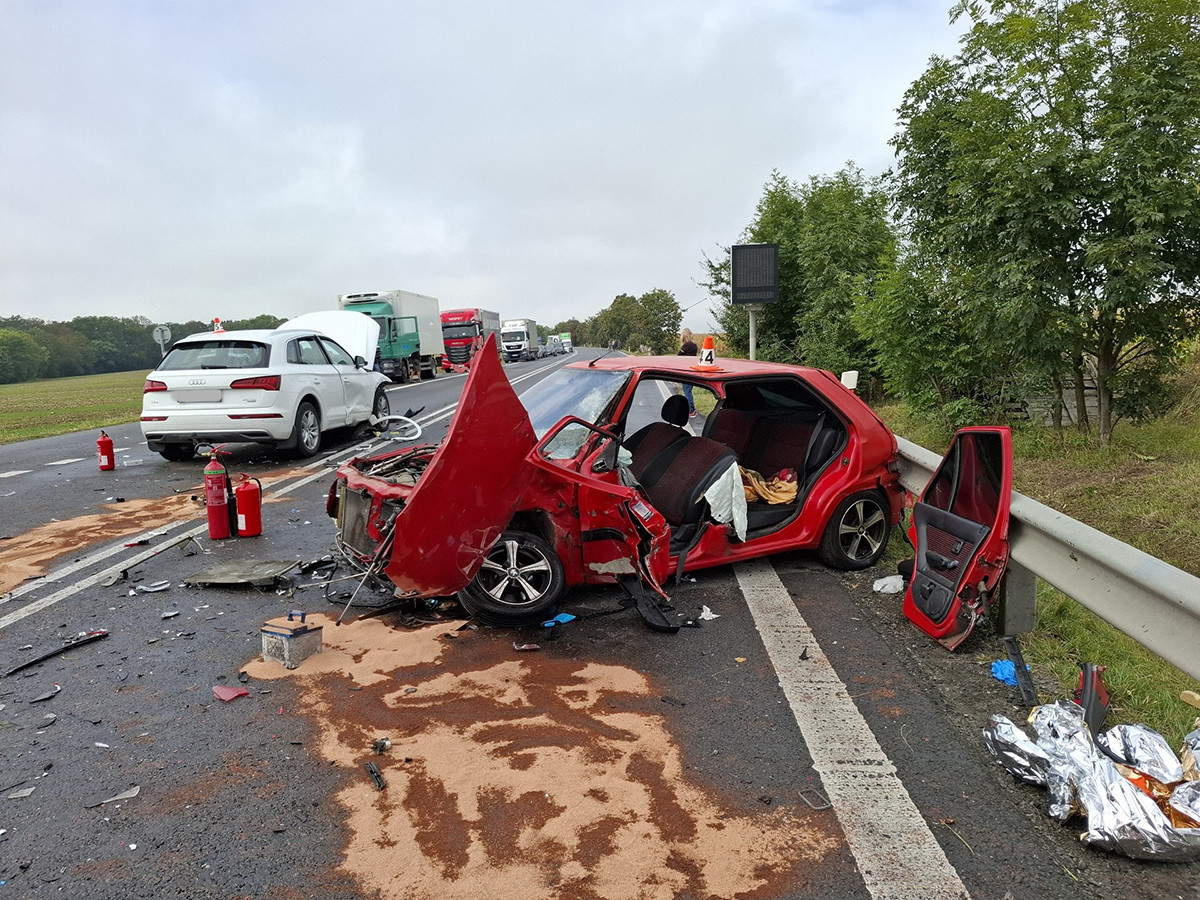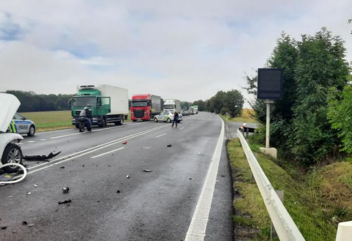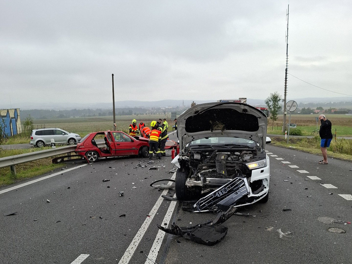 Rušný tah za Mohelnicí zavřela čelní srážka dvou aut