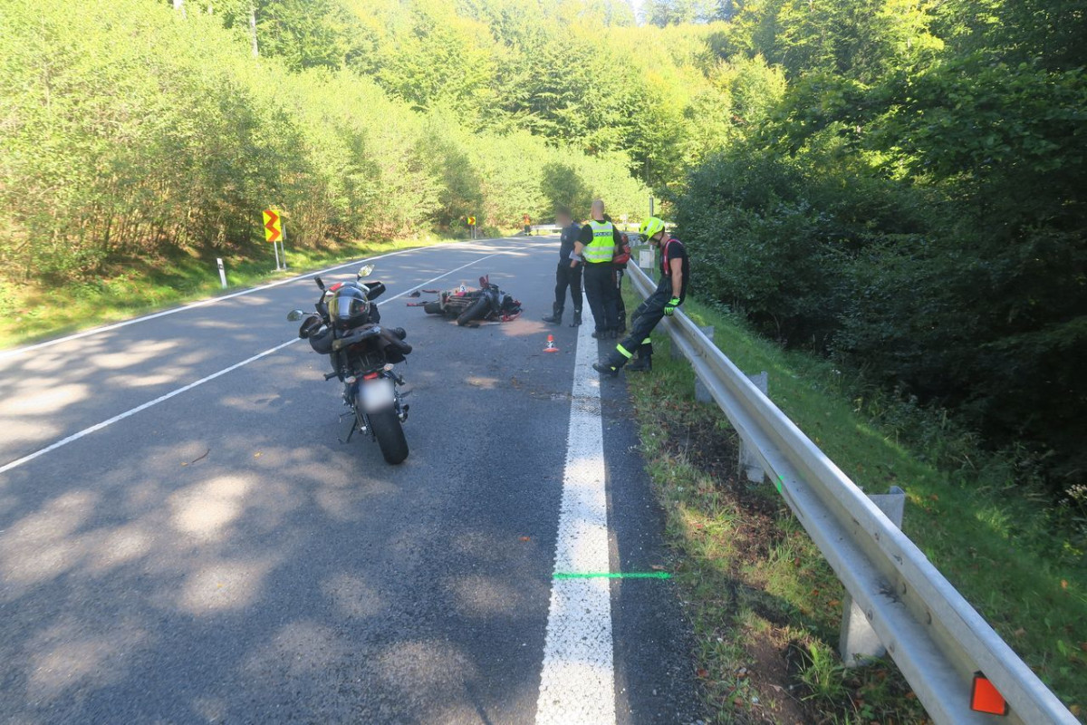 Na Červenohorském sedle havaroval motorkář, policie tam zrovna pořádala bezpečnostní akci
