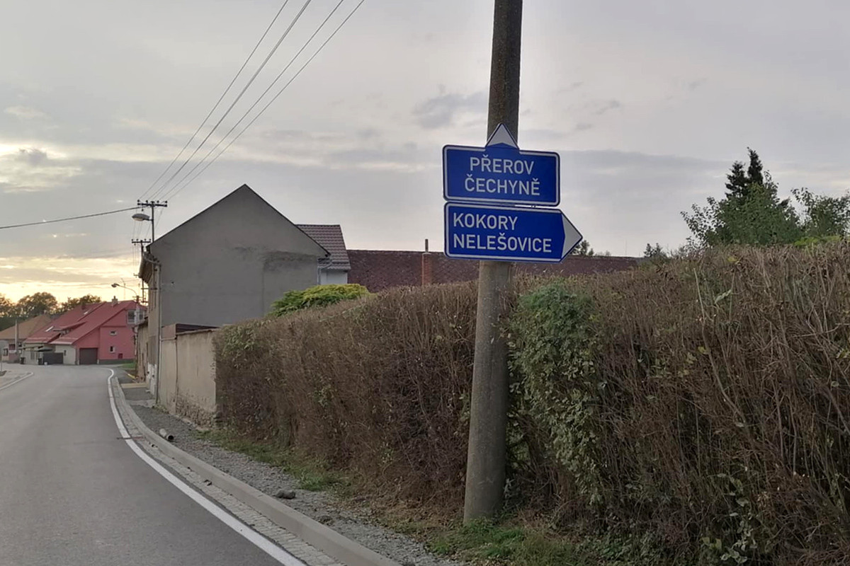 Rovně do Čechyně. Na novém značení v Přerově je překlep, chyba baví místní