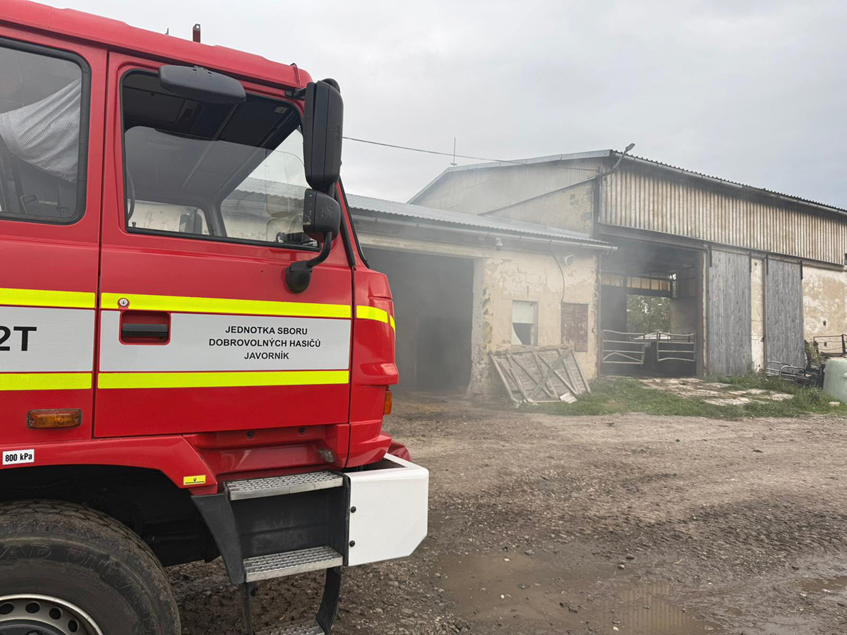 Lidé i zvířata v ohrožení. Hasiči bojovali s požárem v kravíně na Jesenicku