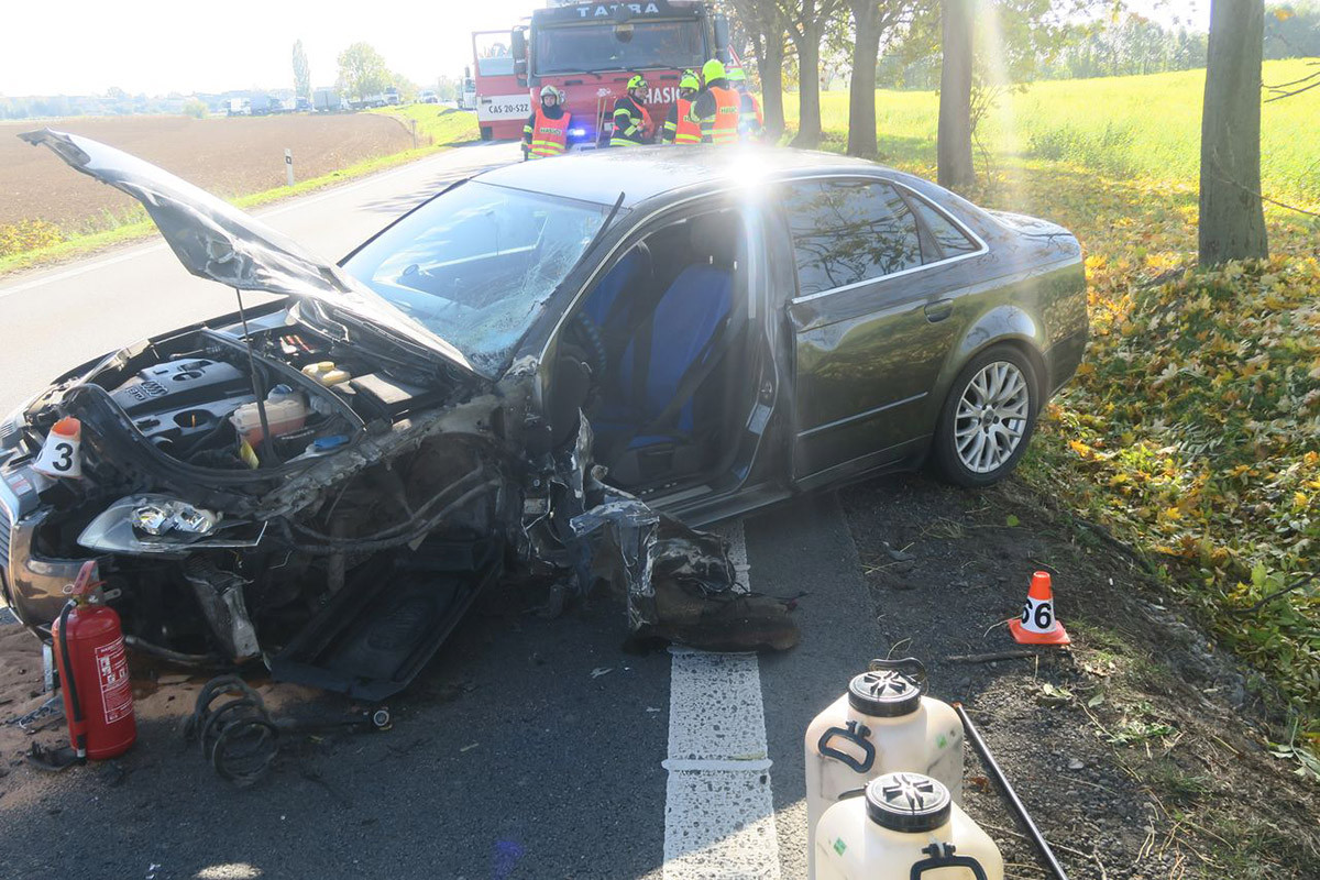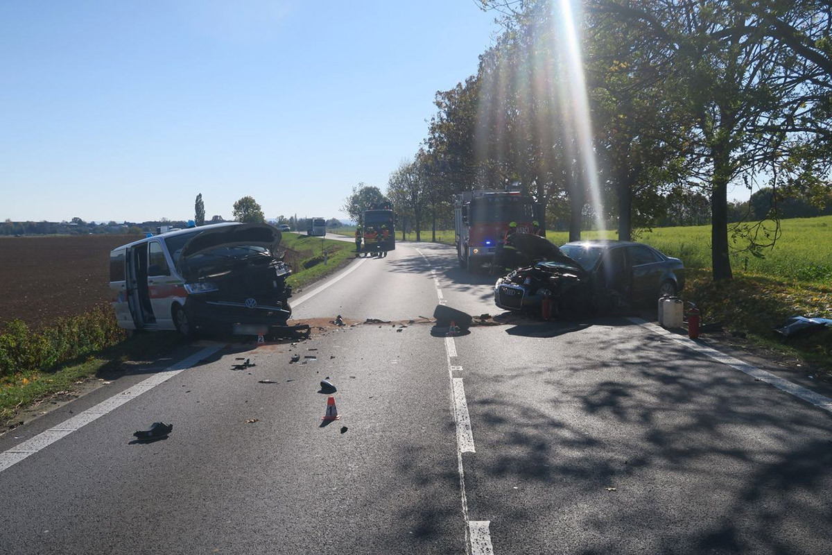 Střet auta a sanitky zablokoval tah za Mohelnicí, k nehodě letěl vrtulník
