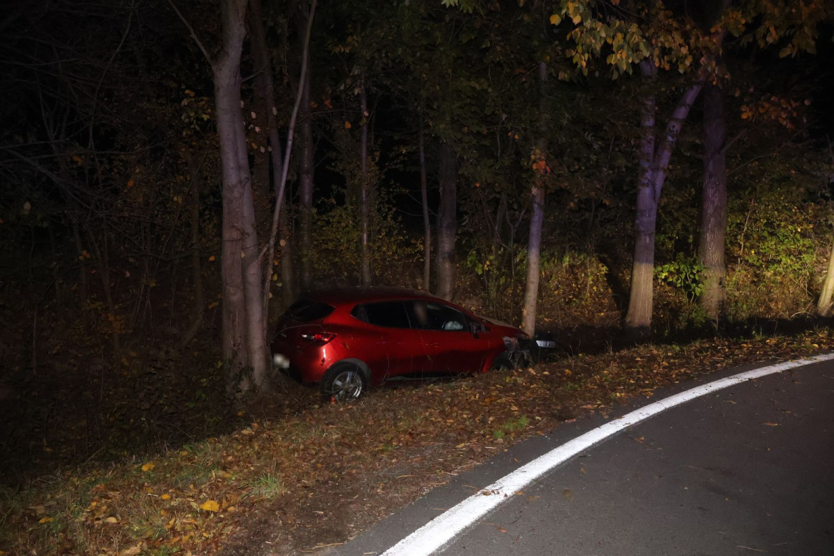 Opilý mladík nezvládl rychlost a u Břevence v noci vyletěl ze silnice. Skončil ve stromě