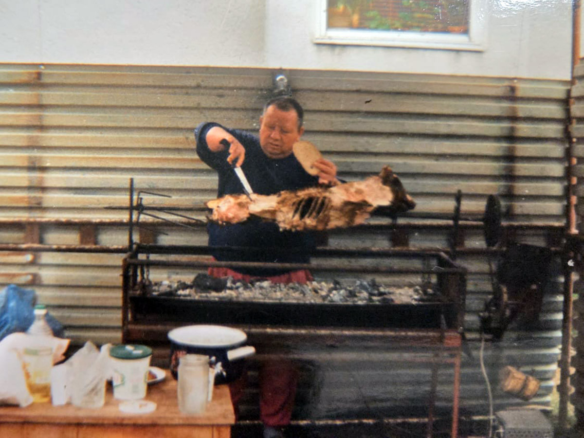Josef Růžička starší při opékání prasete