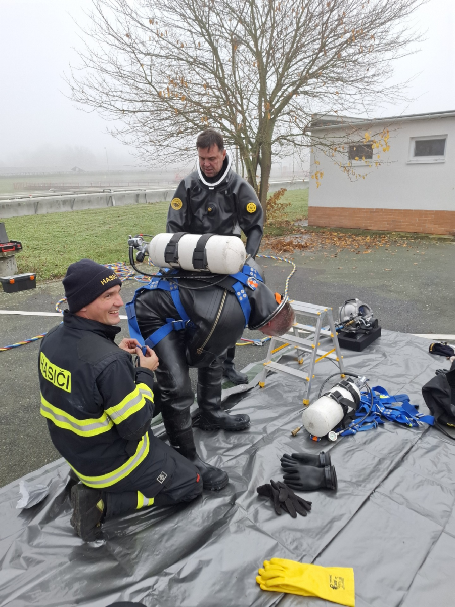 Práce poslepu v nádrži čističky. Potápěči hasičů zvládli v Olomouci speciální úkol