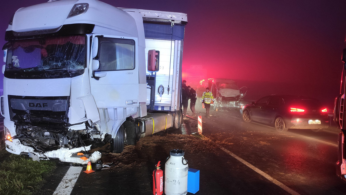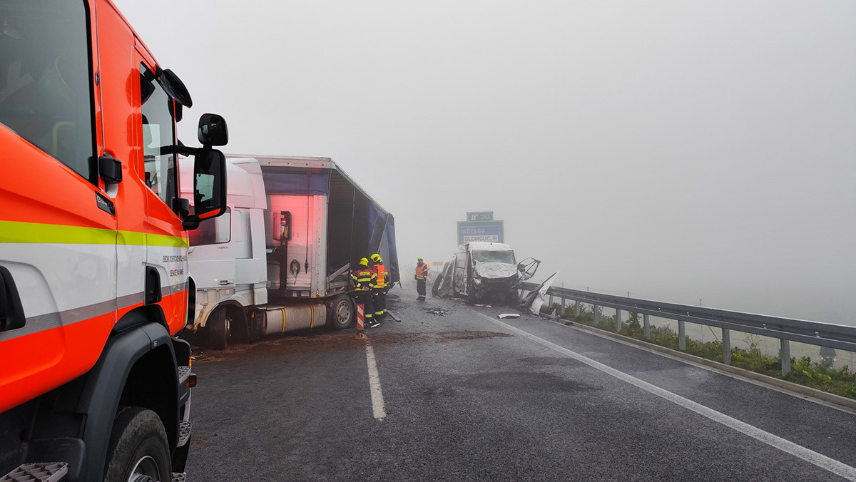 Tragédie na D35 u Olomouce: mladý šofér dodávky zemřel po čelním střetu s kamionem