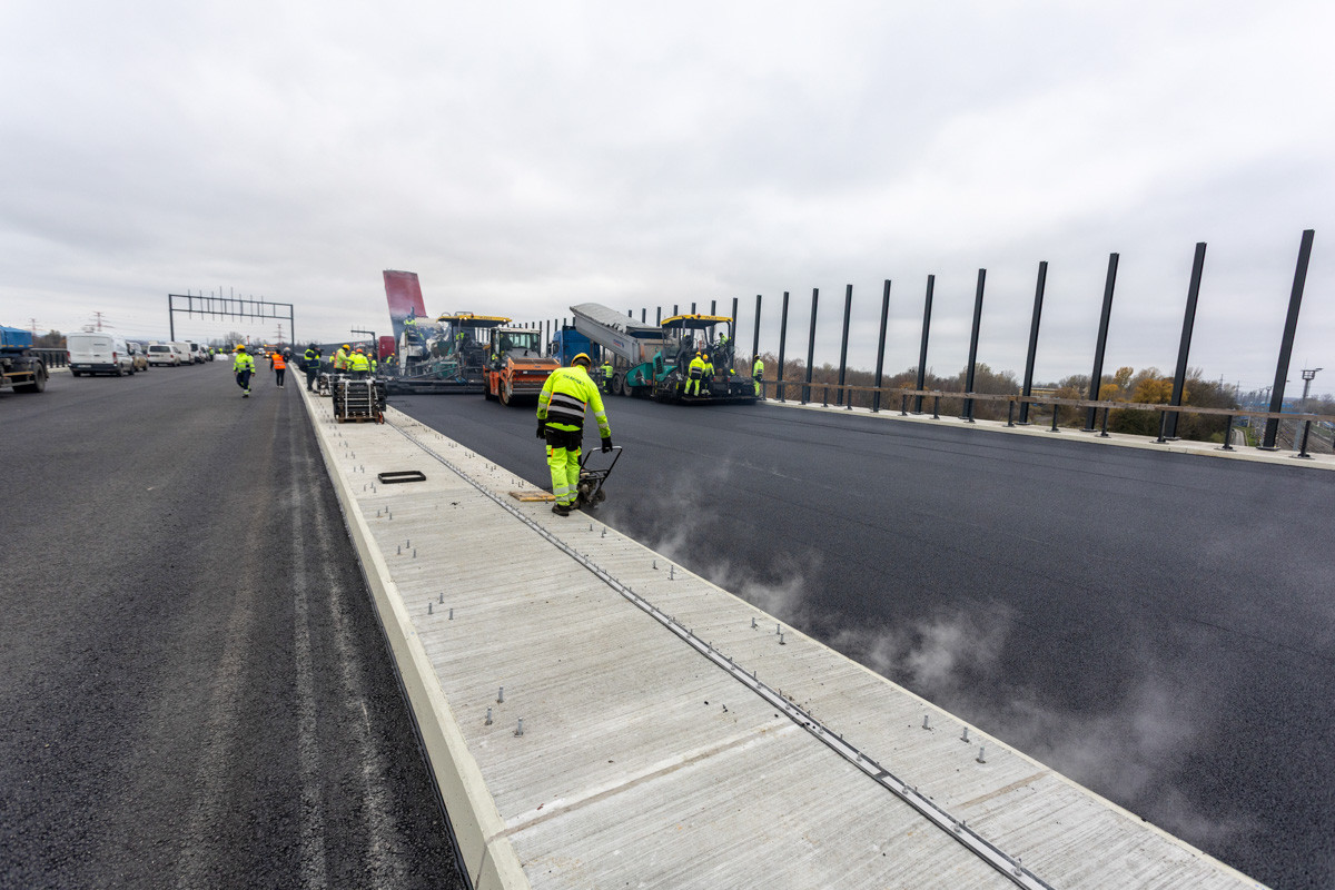Dokončování vozovky dálnice D1 Říkovice - Přerov