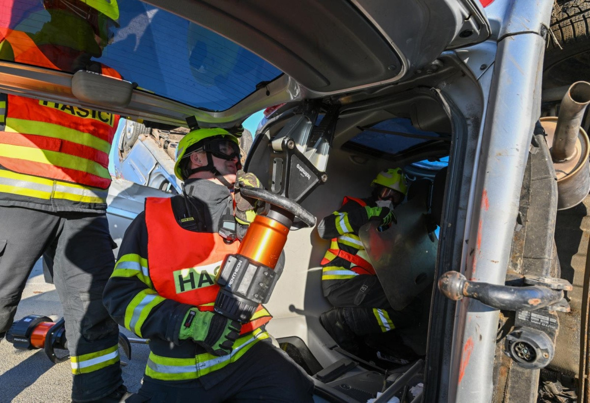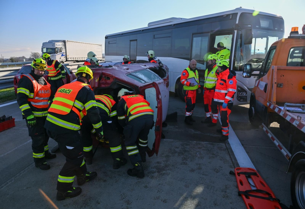 Bouračka autobusu i cisterny. Složky IZS cvičně řešily masivní havárii na nové D1