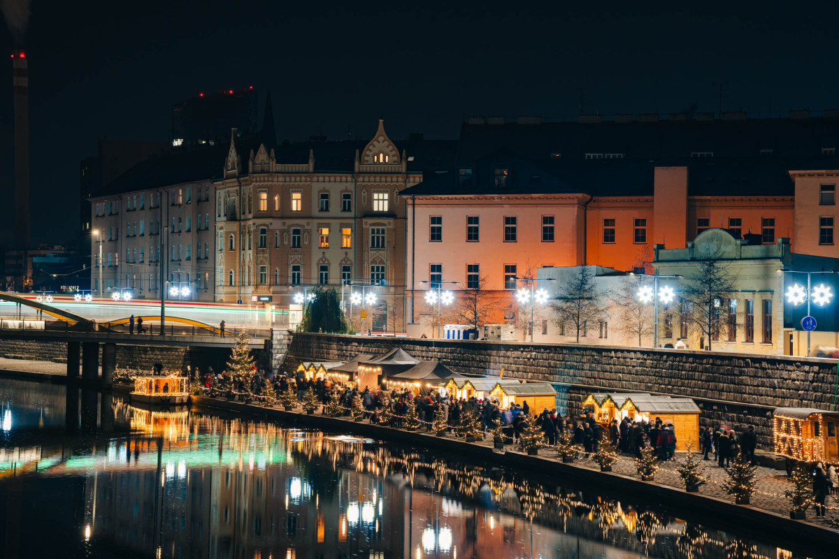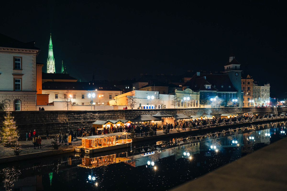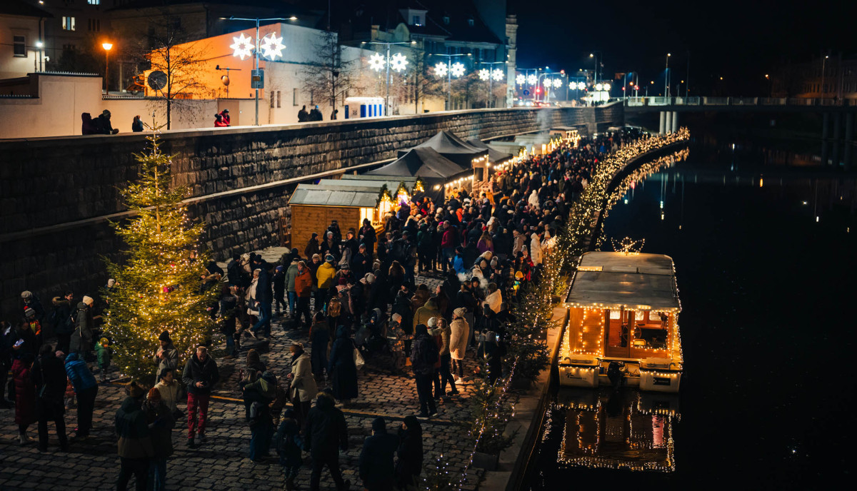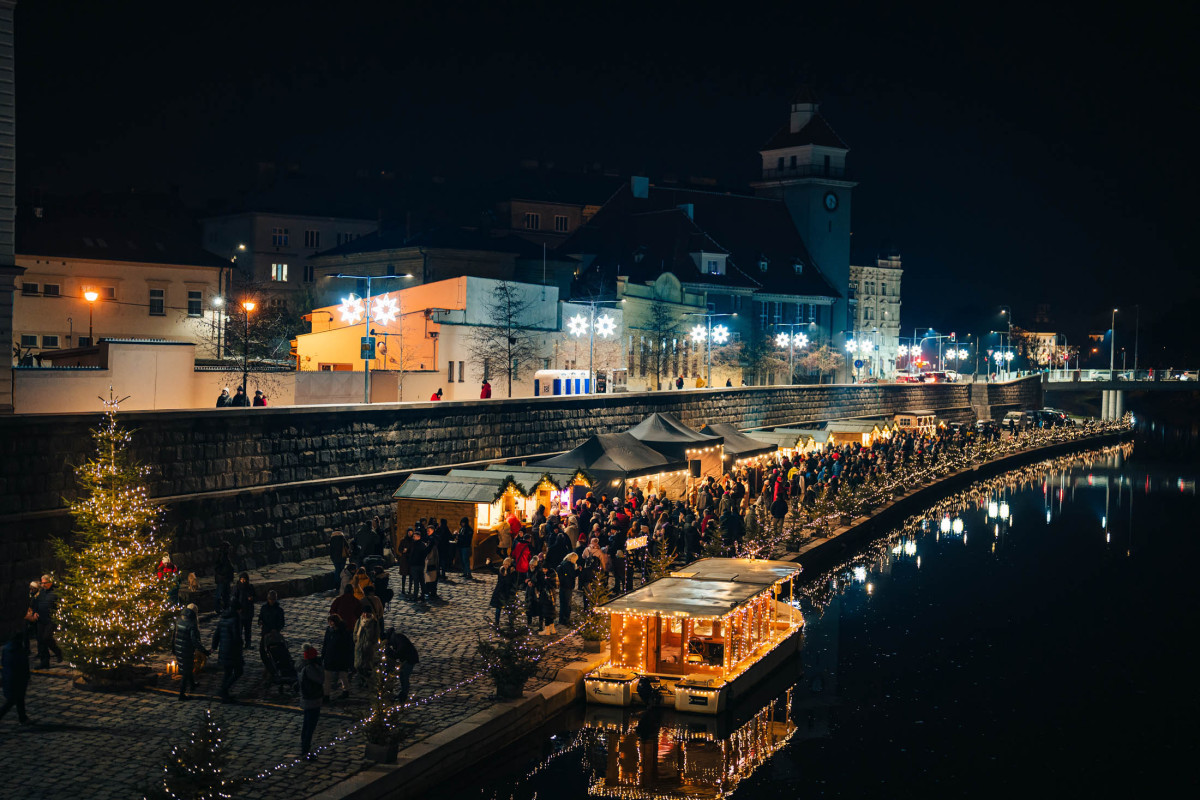 Olomoucká náplavka ožila Vánocemi. Světla, stromečky a řeka vytvořily magickou atmosféru