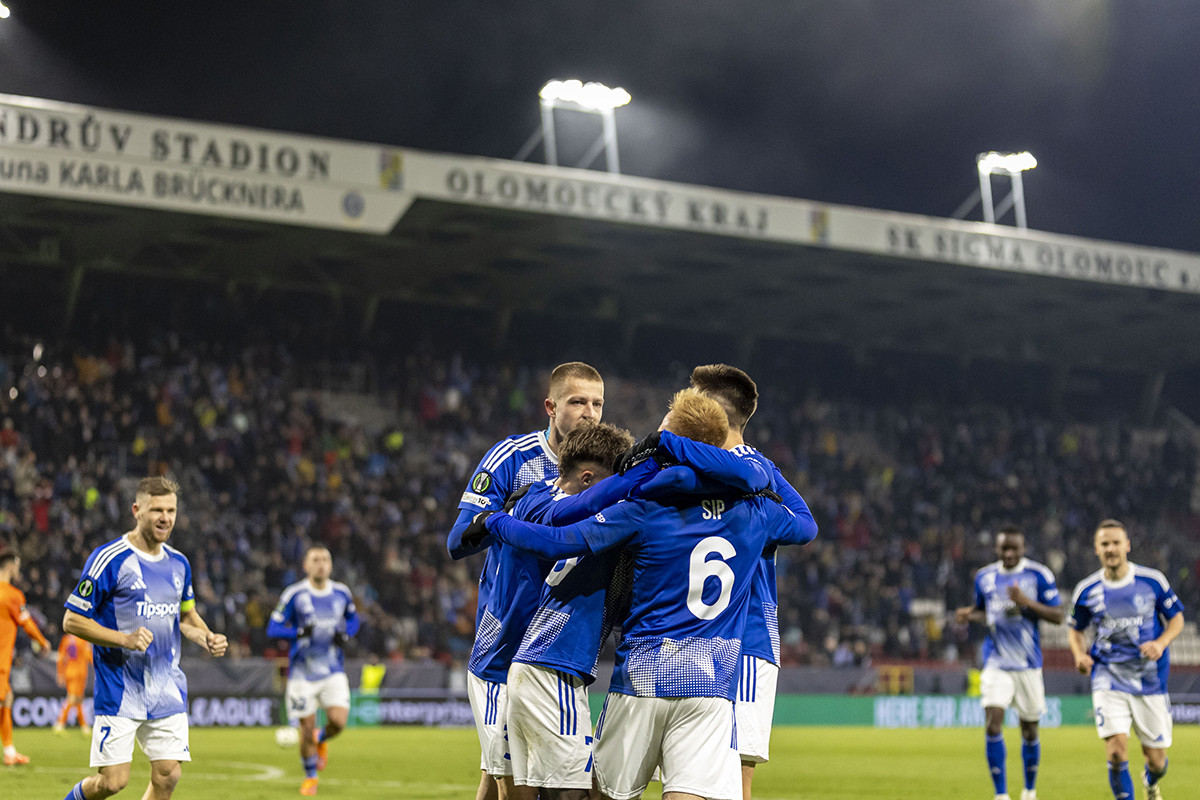 Fotbalisté Sigmy se radují z gólu proti slovinskému Celje