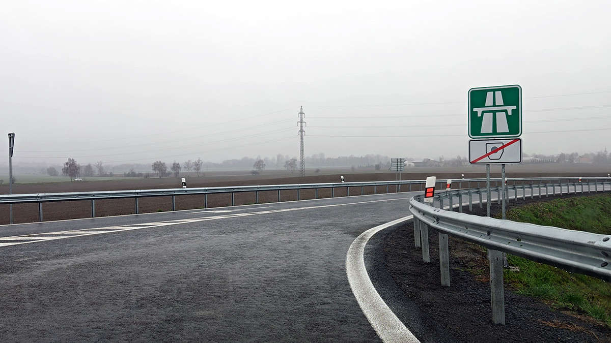 Nájezd na dálnici D55 u Velkého Týnce na Olomoucku
