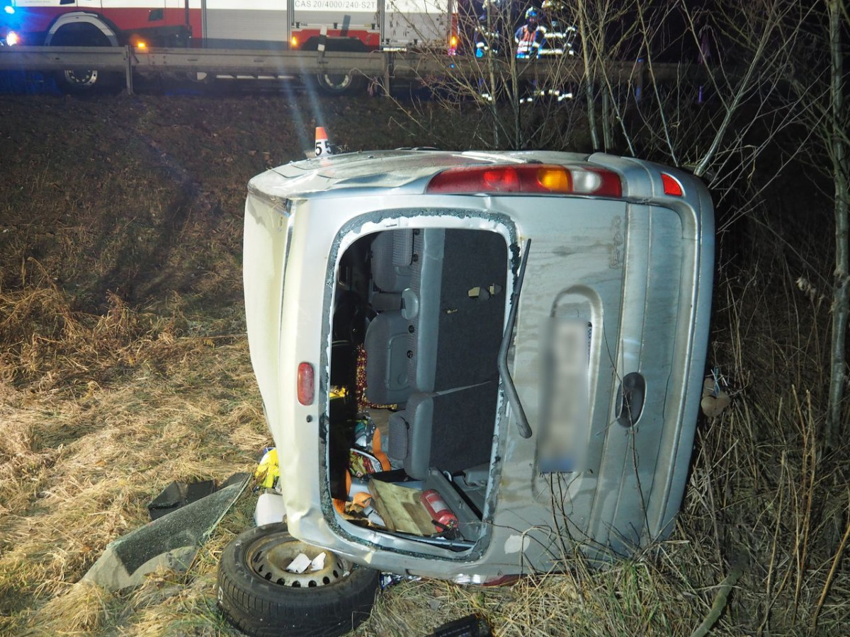 Mladá žena vyletěla z havarovaného auta, které u Bludova spadlo ze svahu. Nebyla připoutaná