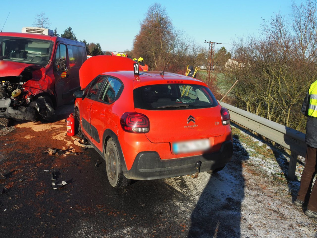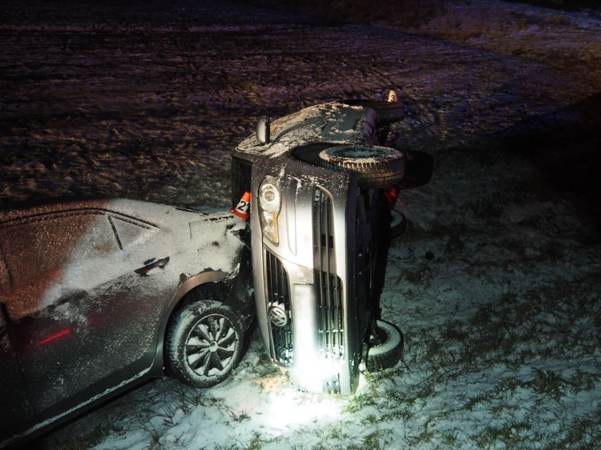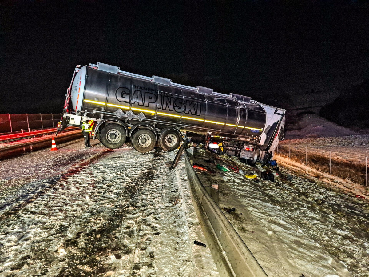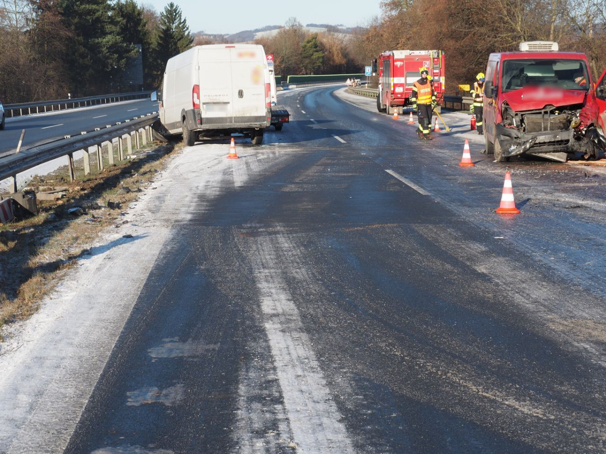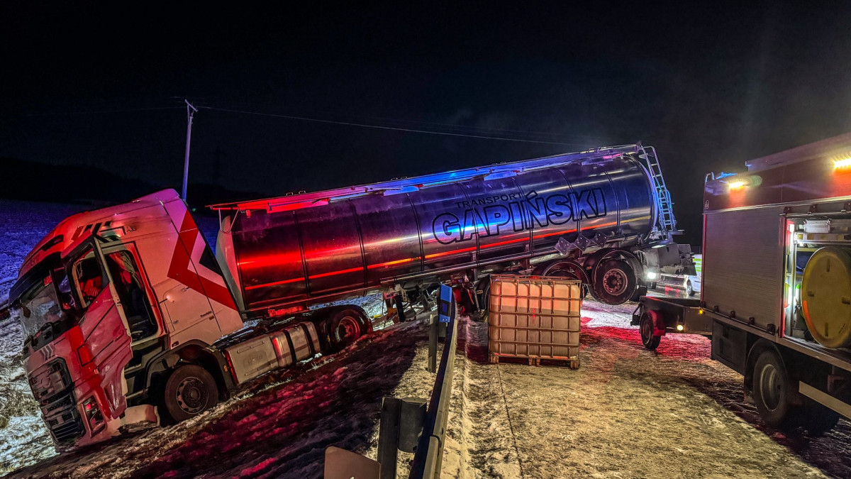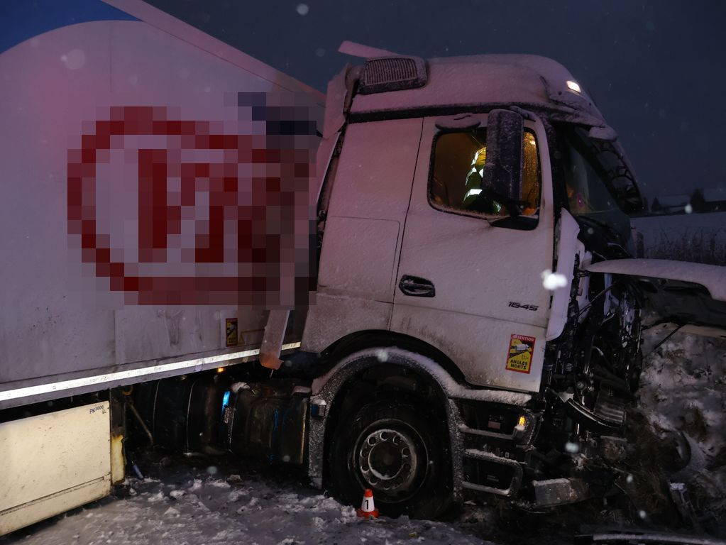 Řidiči podcenili sněžení. Hromadná nehoda u Mohelnice, kamiony zablokované na dálnici