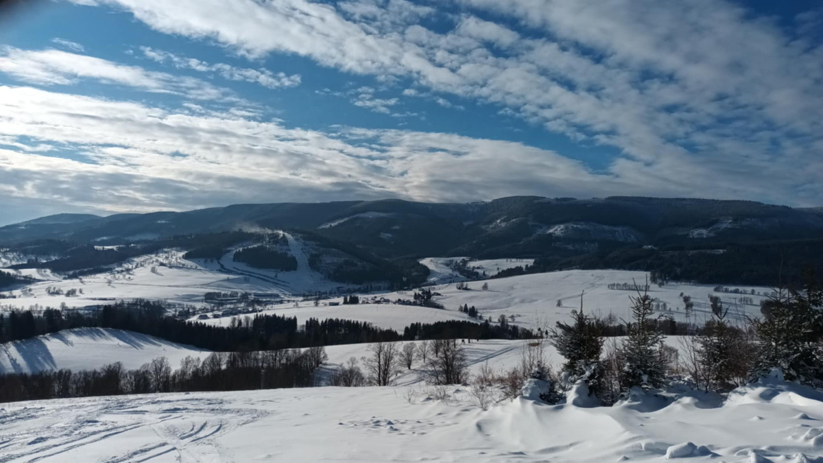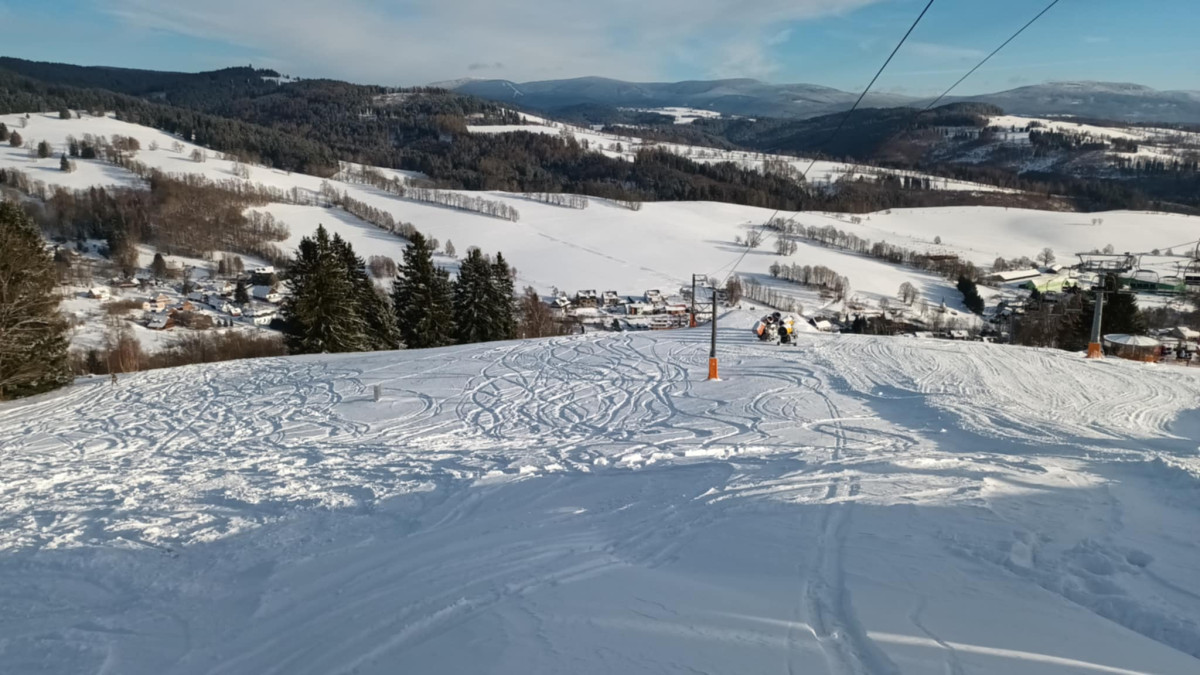 FOTOGALERIE: Do Jeseníků se vrátila pravá ladovská zima, slunce i sněžení. Hory zaplavili lyžaři