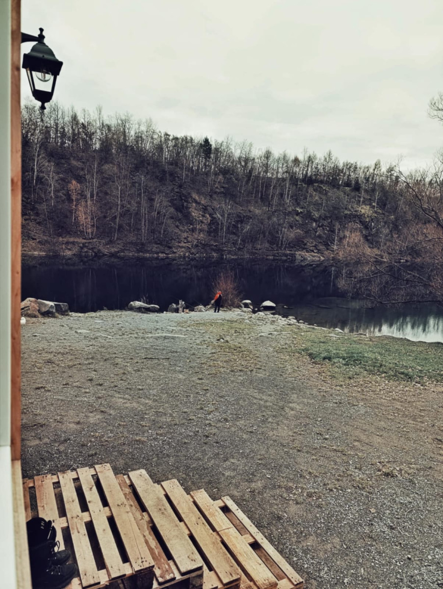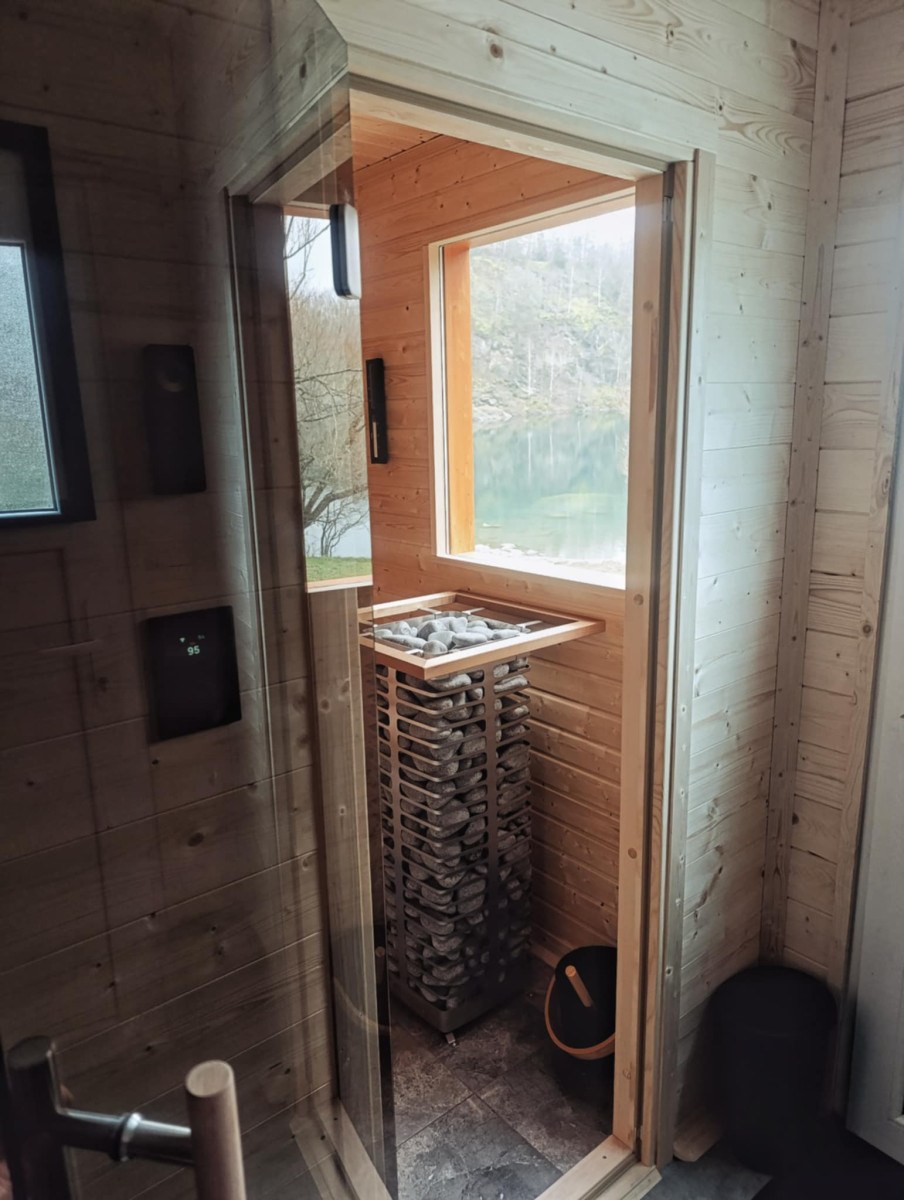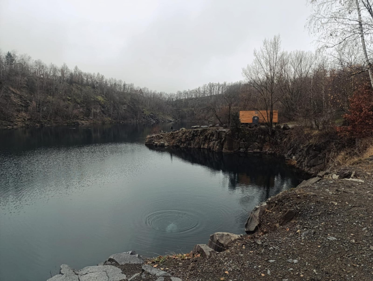 Sauna ve Výklekách. Oblíbený lom nabízí zážitek i v zimě, lidé si mohou vysekat díru v ledu