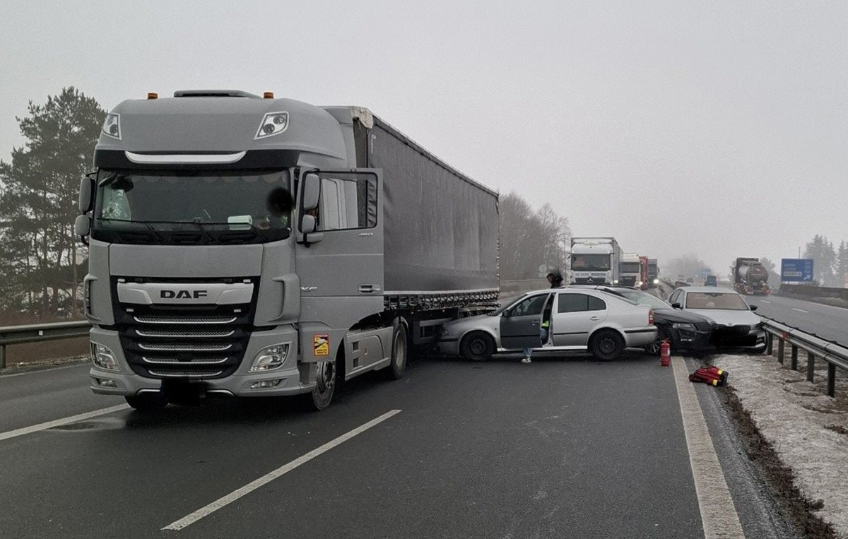 Hromadná nehoda u Hněvotína i havárie na dálnici. Ledovka zaskočila řidiče