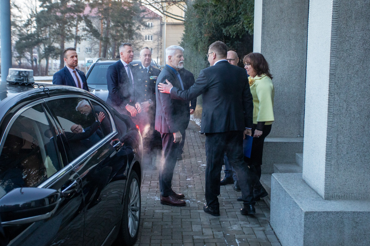 Prezident Petr Pavel při příjezdu na olomoucké gymnázium Hejčín
