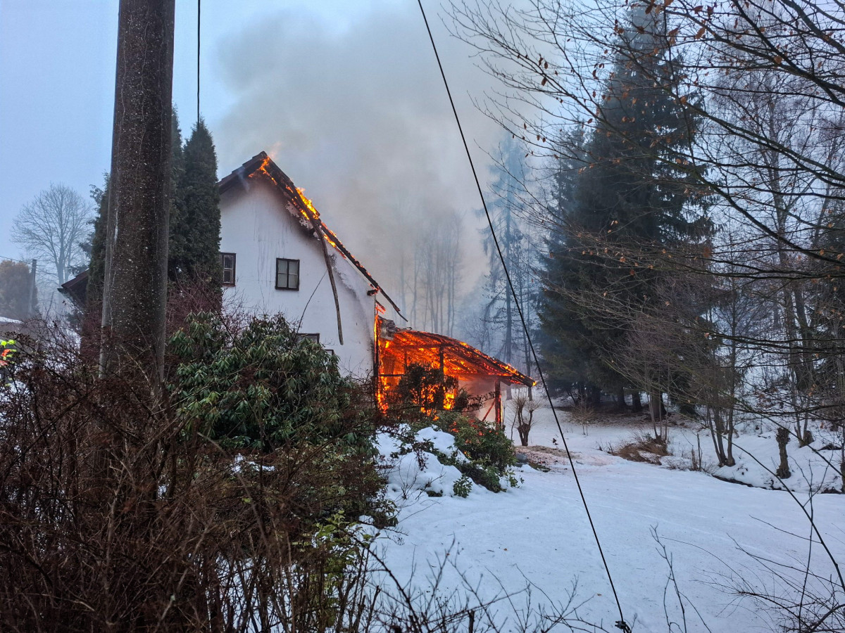 U Malé Moravy vyhořela chata. Škoda bude v milionech, zasahovalo šest jednotek