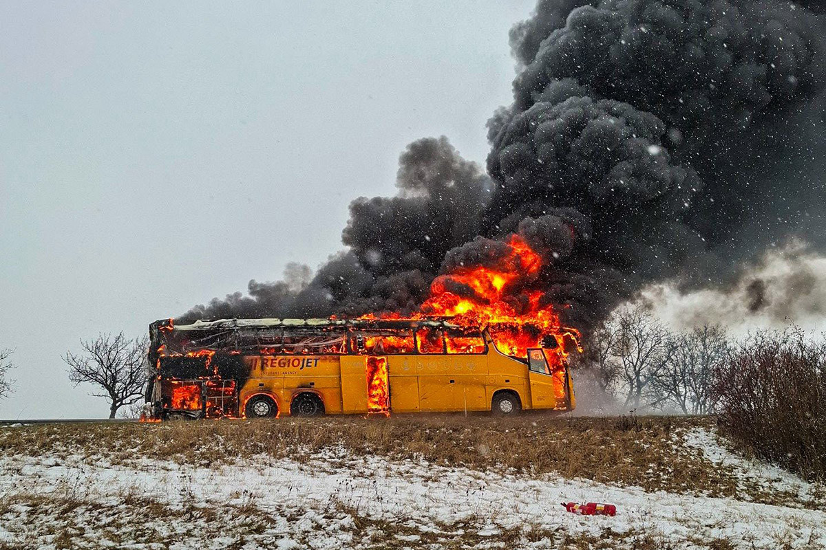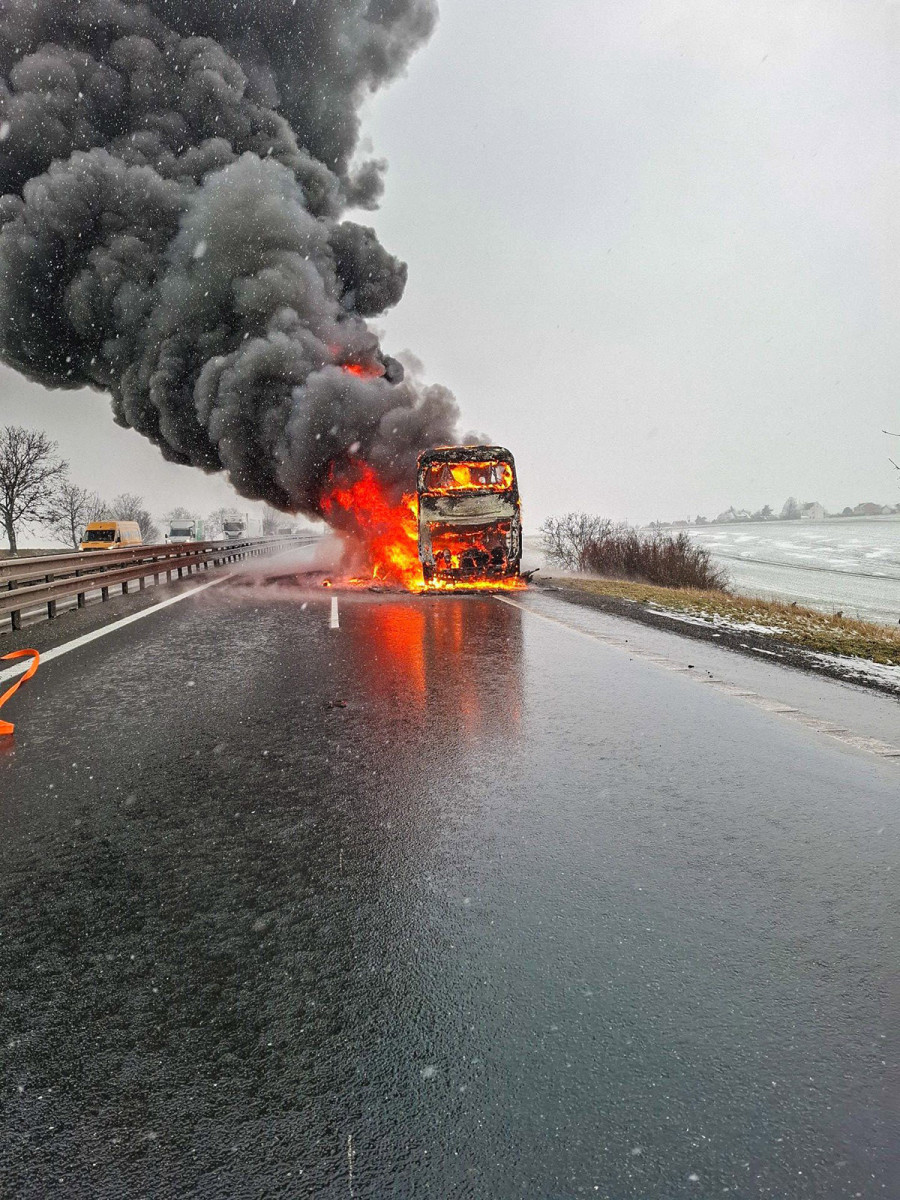 VIDEO: Plameny zdevastovaly autobus známého dopravce. D46 u Prostějova stojí