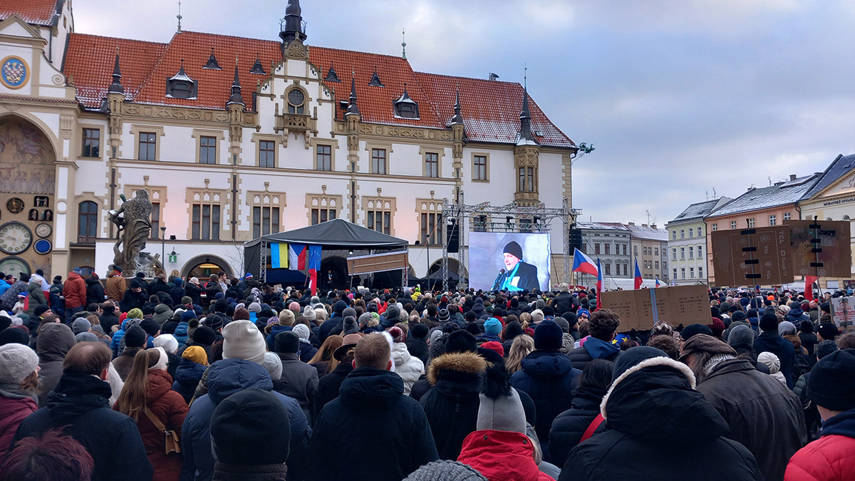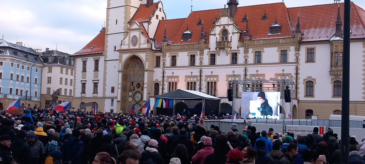 Stojíme za prezidentem v Olomouci: demonstrace zaplnila náměstí před orlojem