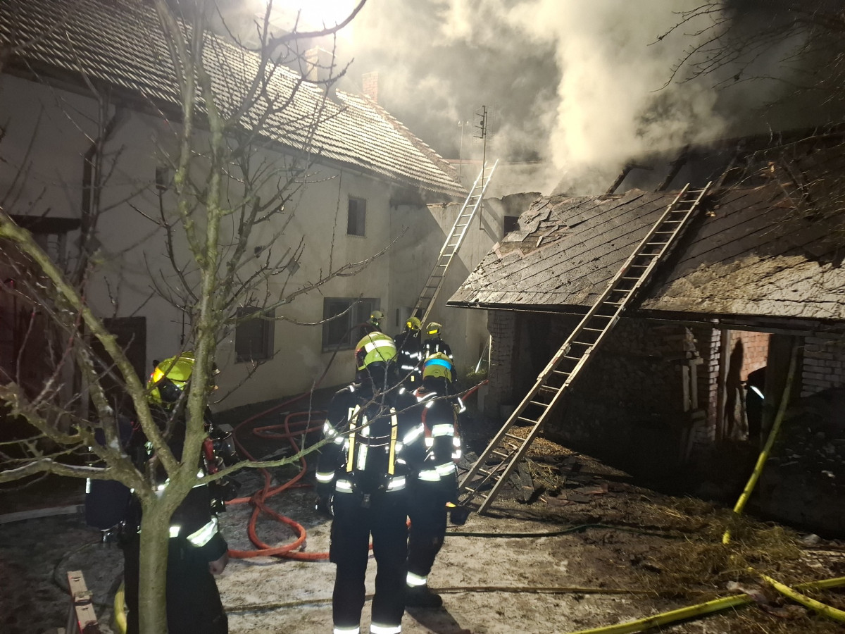 V Charvátech hořely dva domy, oheň nezasáhl obytné prostory. Škoda půjde do milionu