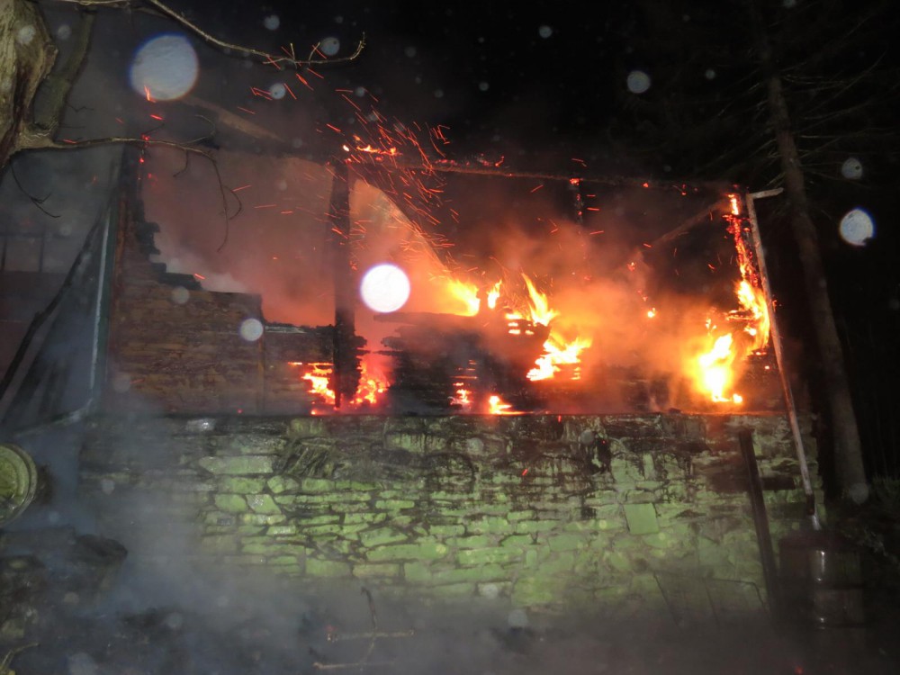 Čtyři jednotky hasičů likvidovaly v noci požár chaty na Hrubé Vodě