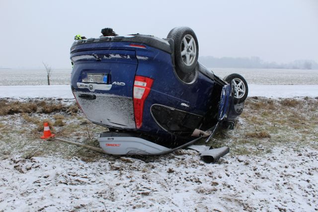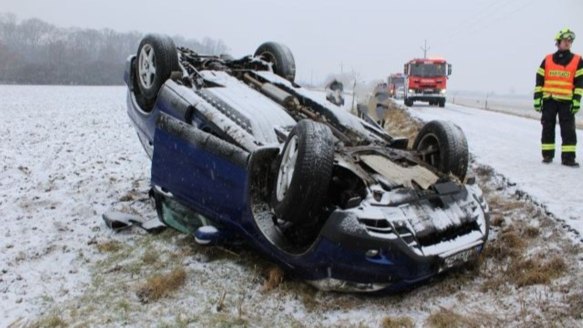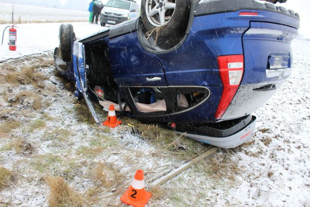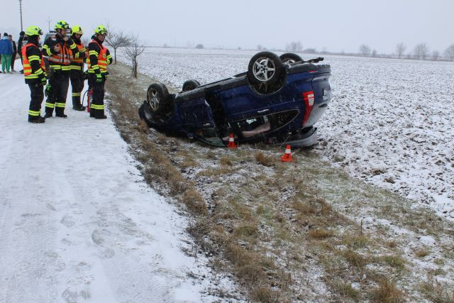 Osmnáctiletý řidič převrátil na Přerovsku auto se čtyřmi lidmi na střechu. Na sněhu jel rychle