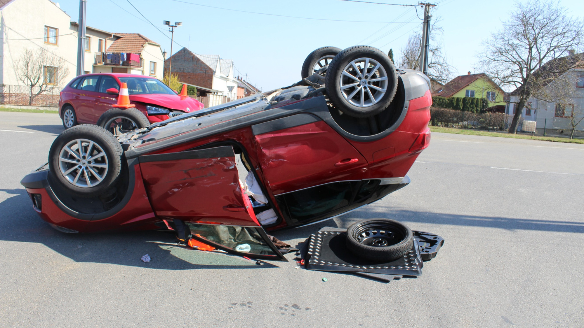 Osmnáctiletý řidič nedal přednost. Ve Veselíčku skončil s autem na střeše