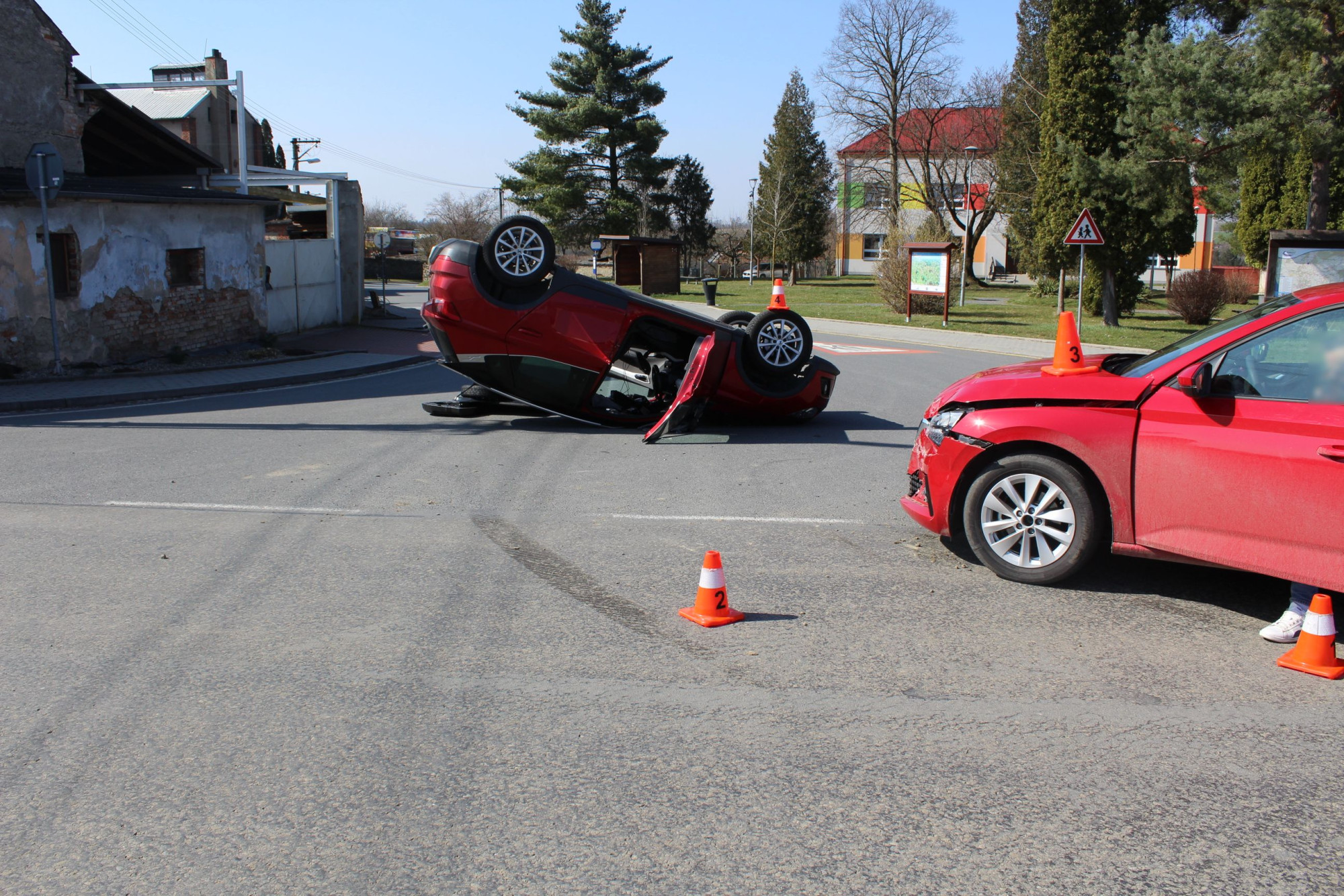 Osmnáctiletý řidič nedal přednost. Ve Veselíčku skončil s autem na střeše