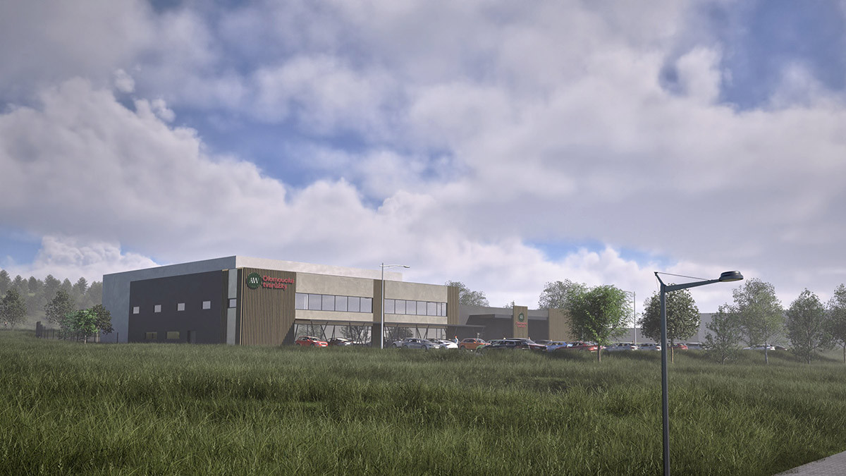 Vizualizace nových výrobních kapacit a retail parku v Lošticích