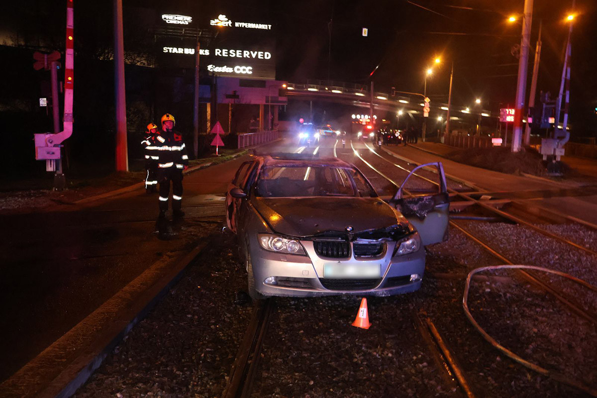 Noční bouračka u Šantovky: mladá řidička měla 2 promile, BMW pohltily plameny