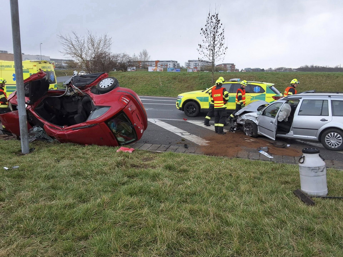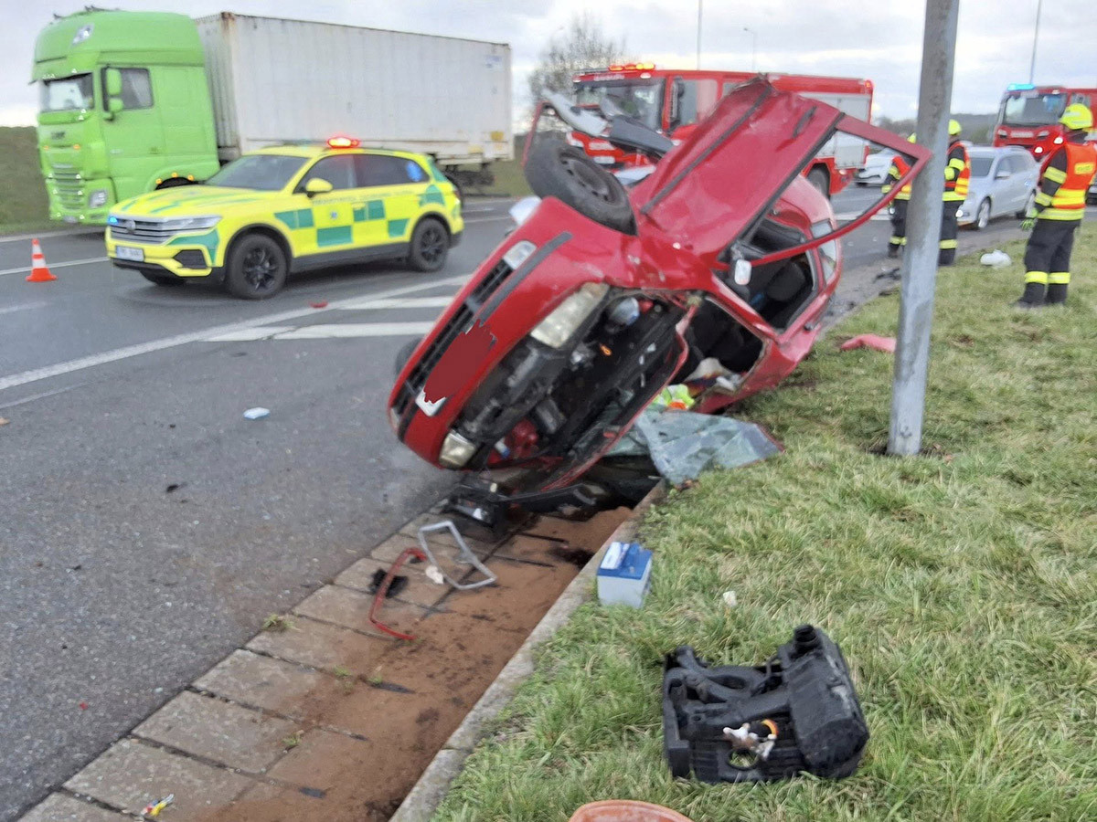 Vážný střet na kruháči u Globusu v Olomouci. Řidiče z auta vystříhávali hasiči