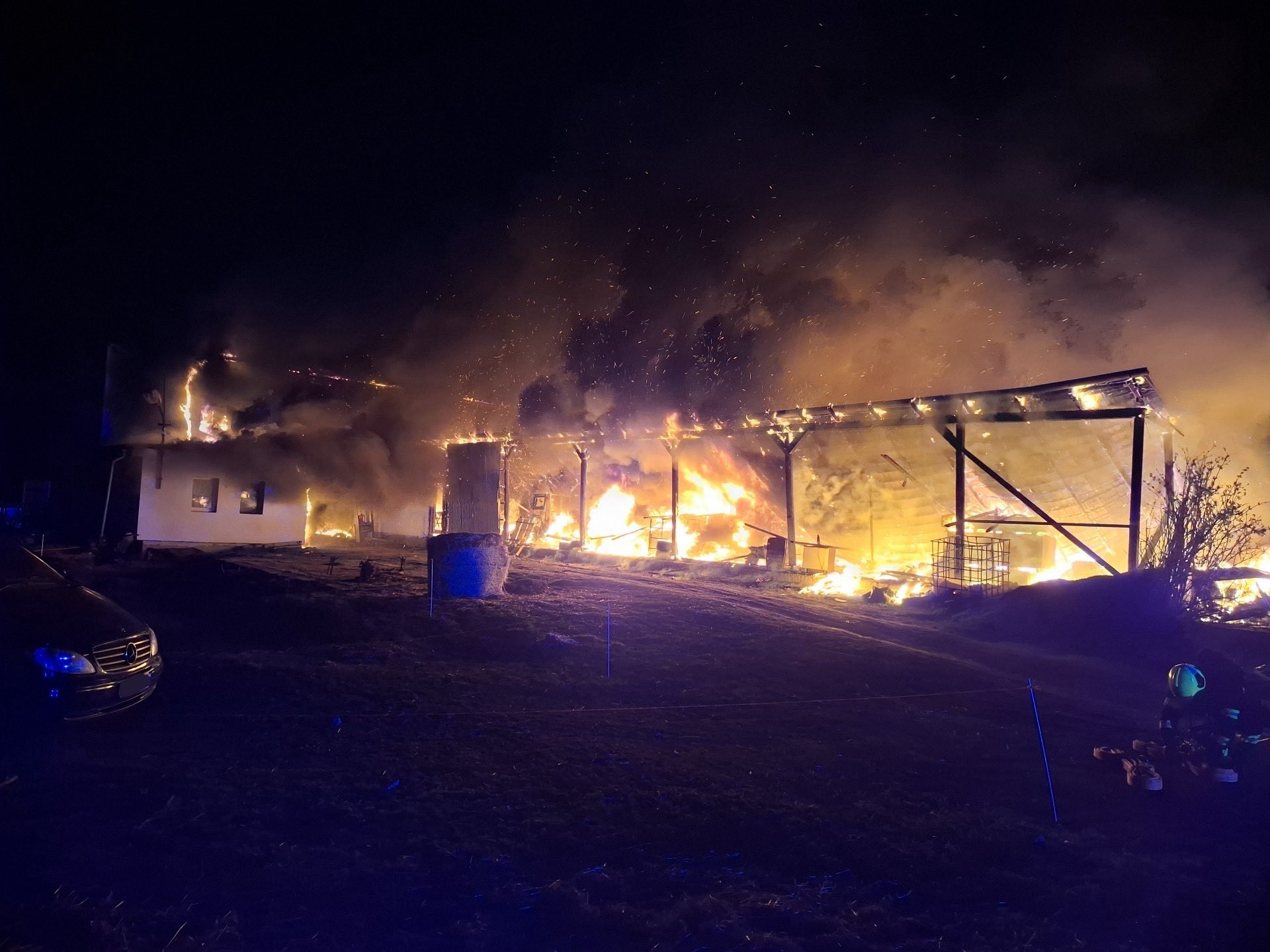 Mohutný požár na Šumpersku, shořela stodola a část rodinného domu. Škoda je pět milionů