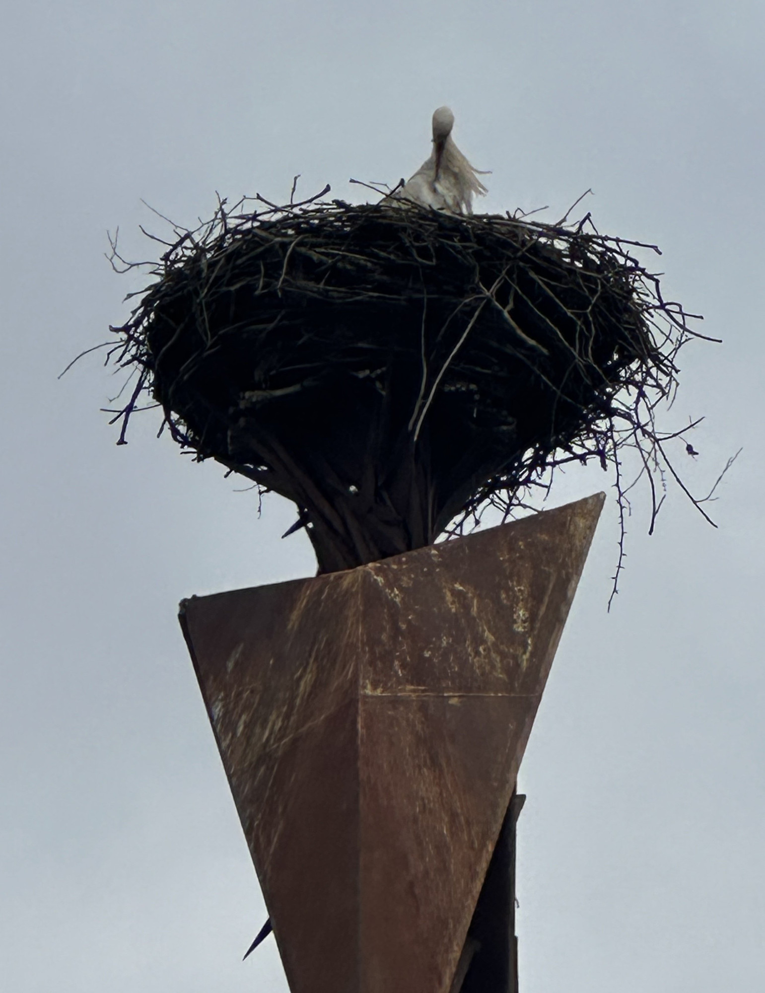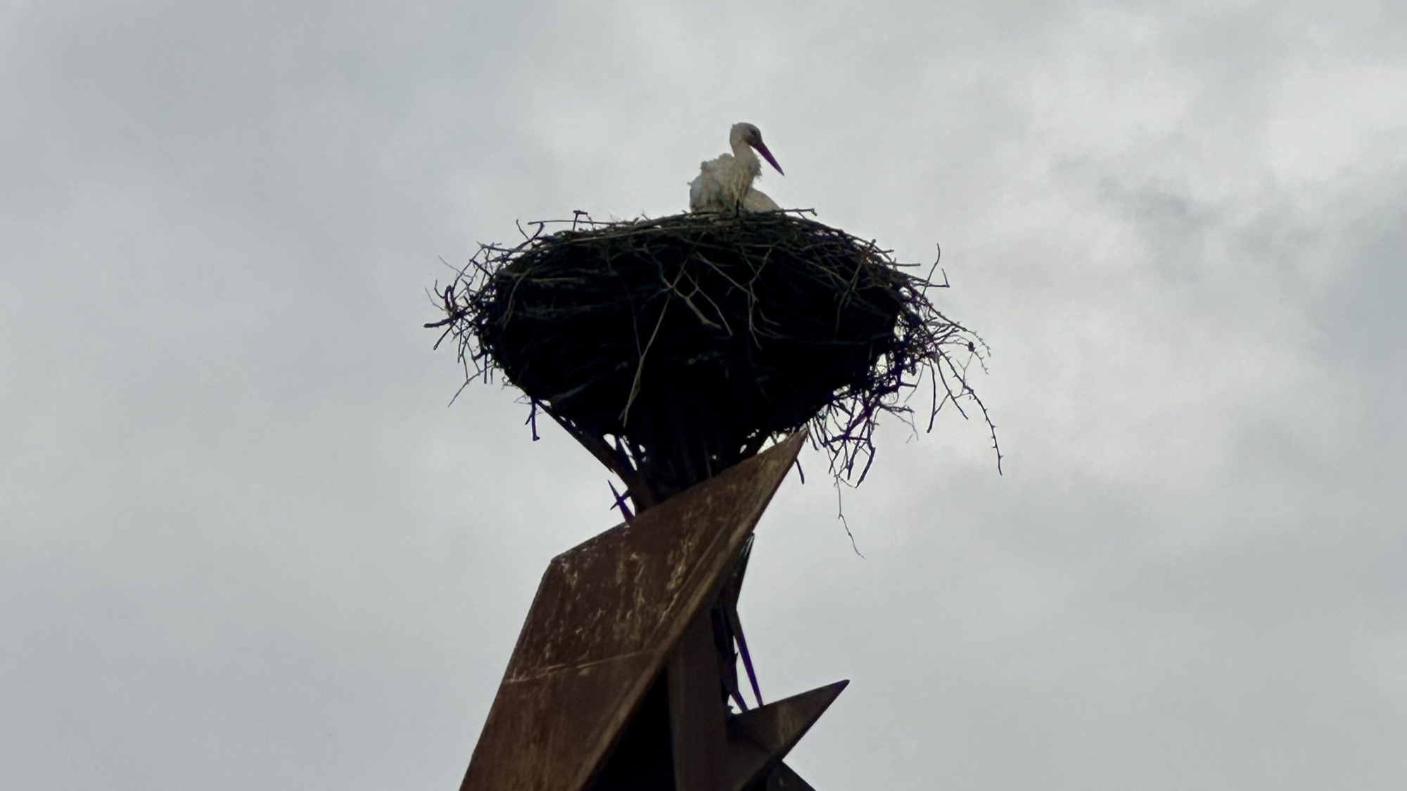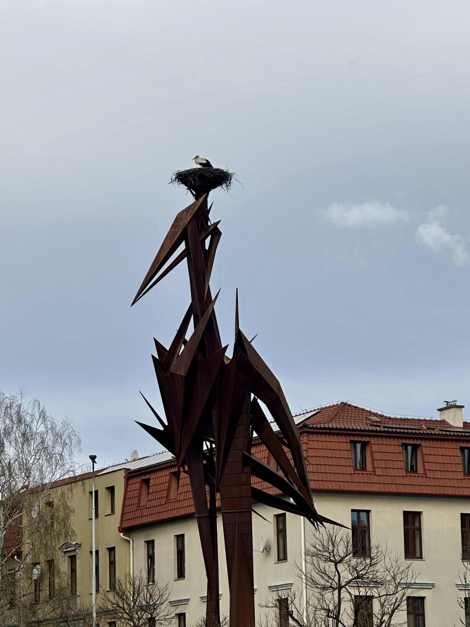 Čáp je zpět. Oblíbený opeřenec se v Hranicích už podruhé vrátil na stejnojmennou sochu