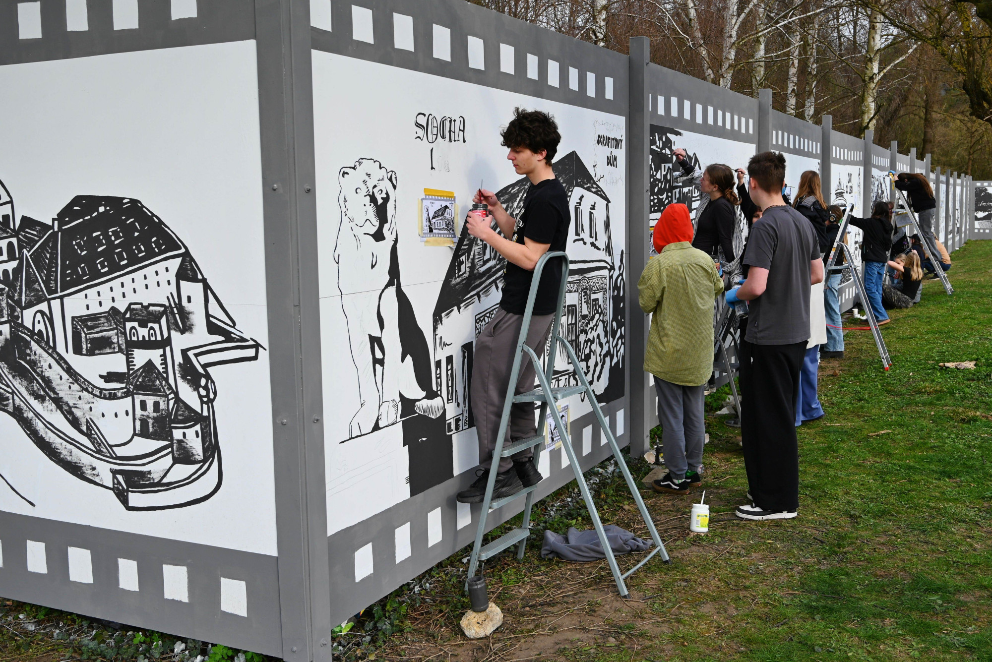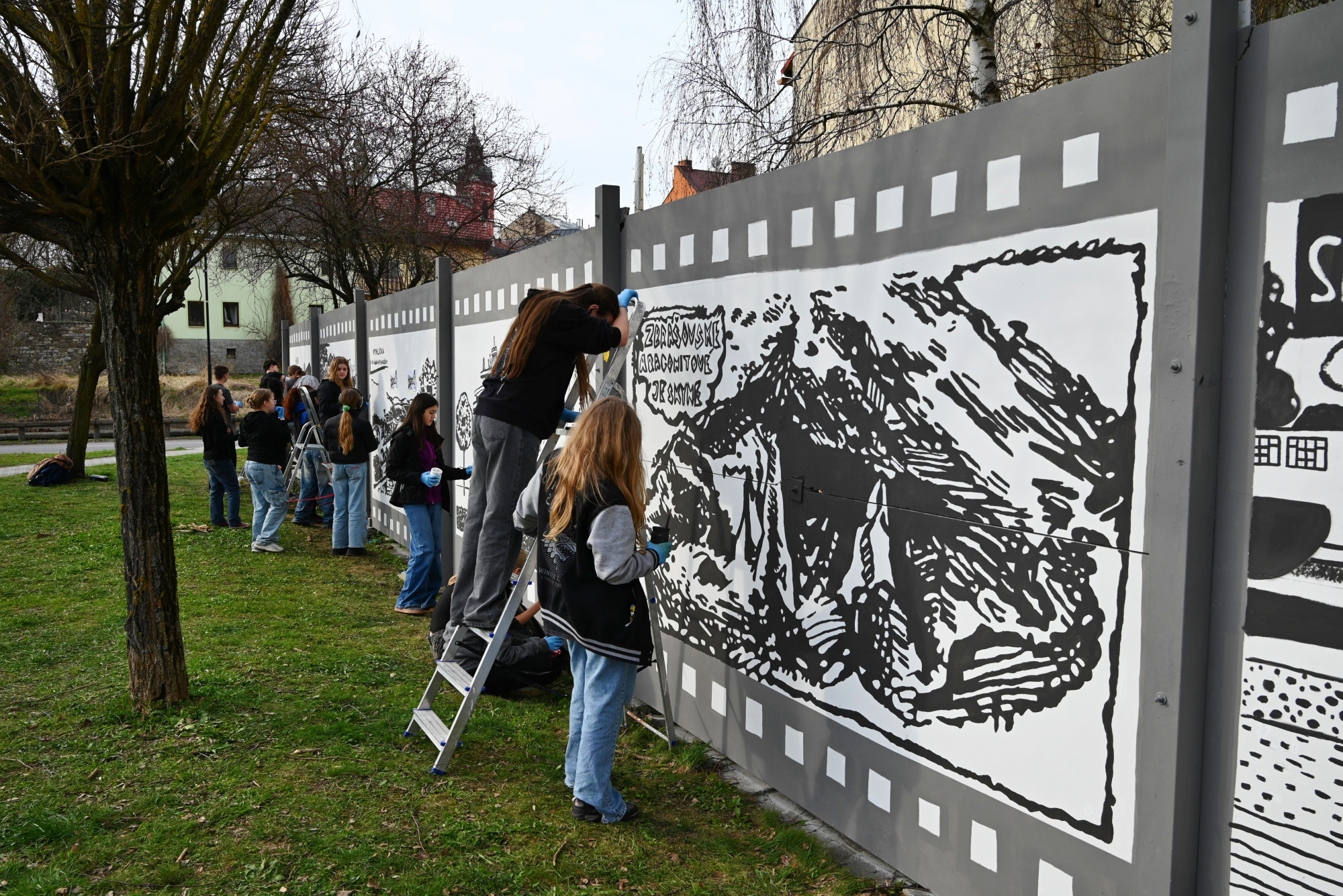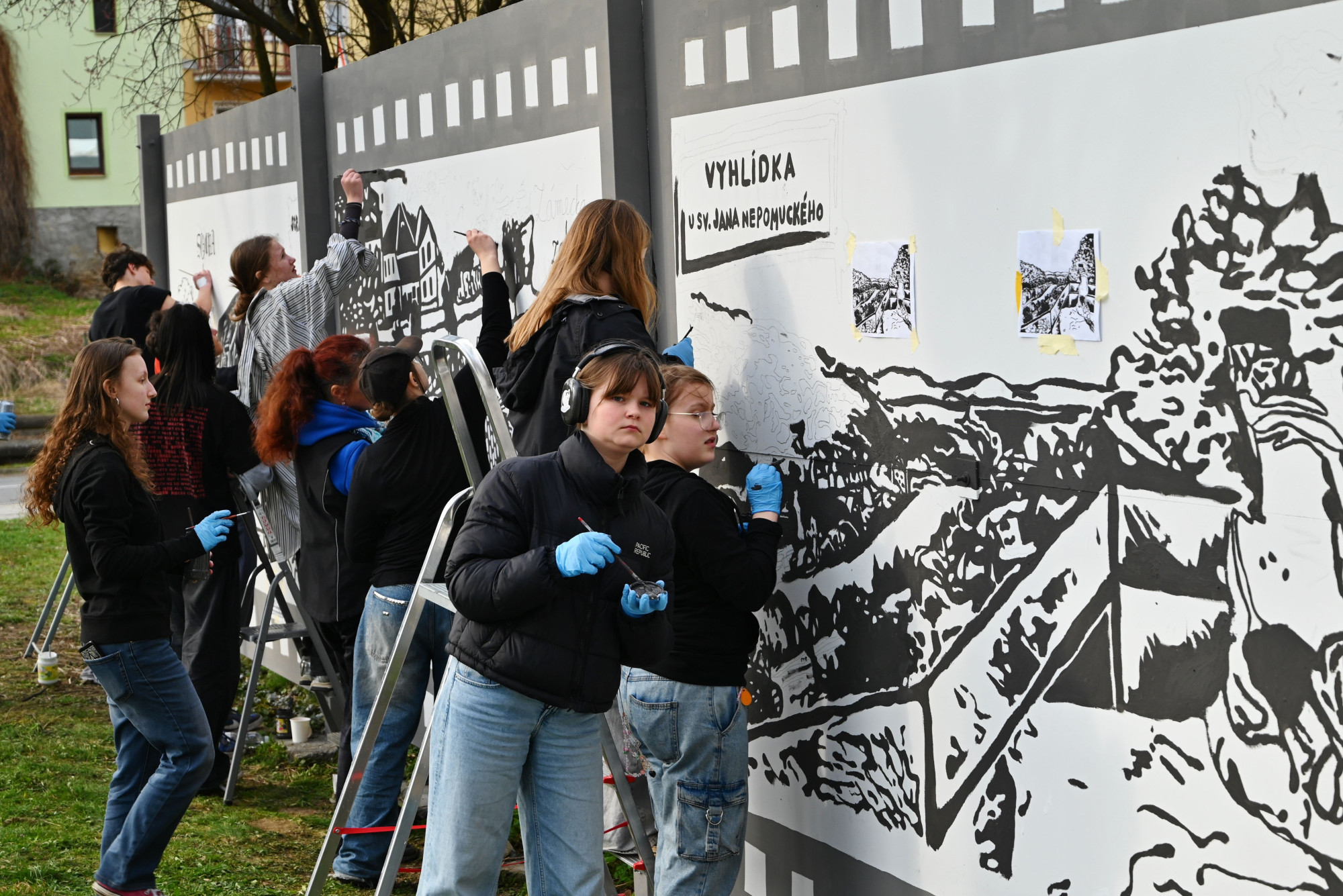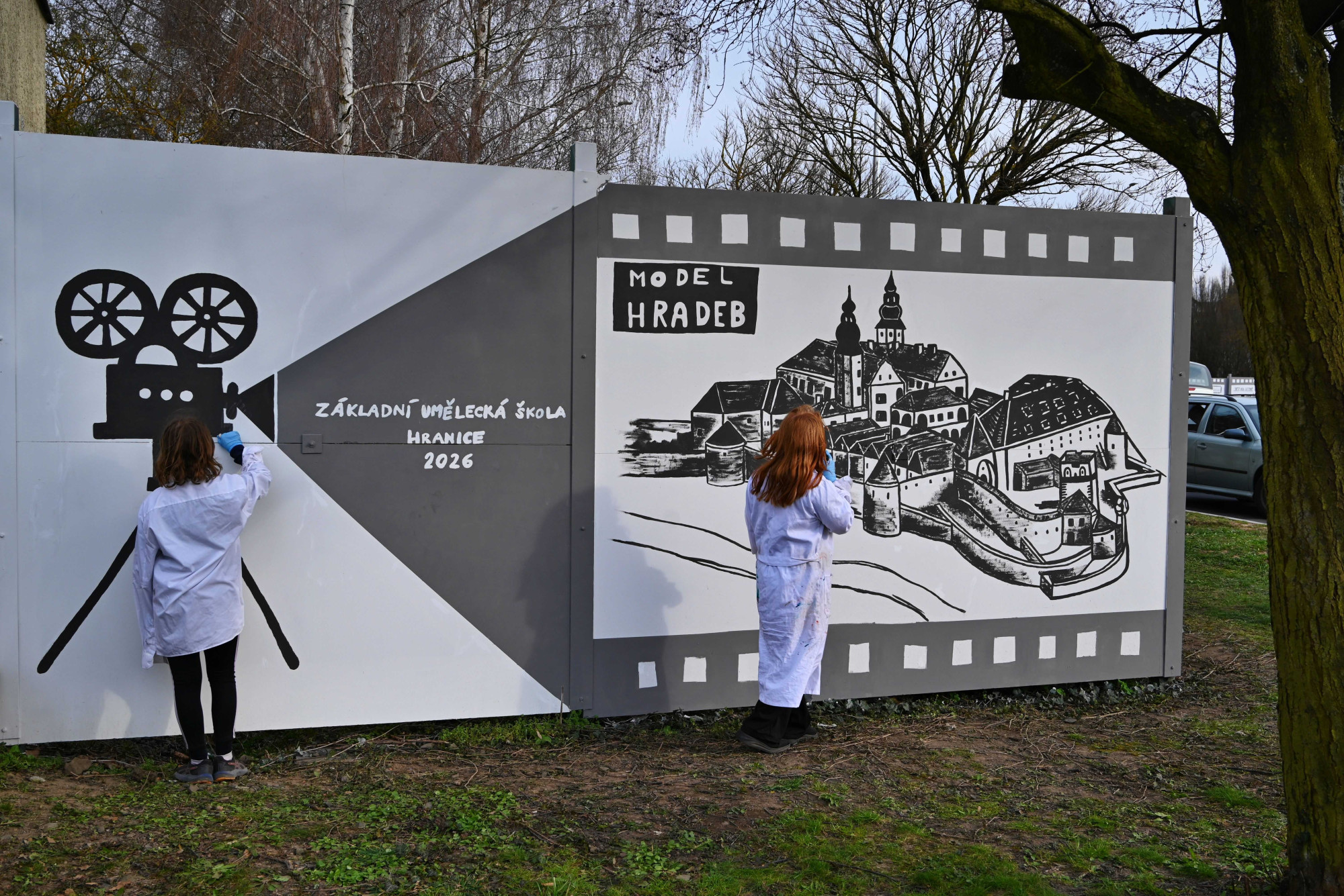 Děti z Hranic vytvořily venkovní galerii. Na zeď namalovaly zámek, propast nebo jeskyně