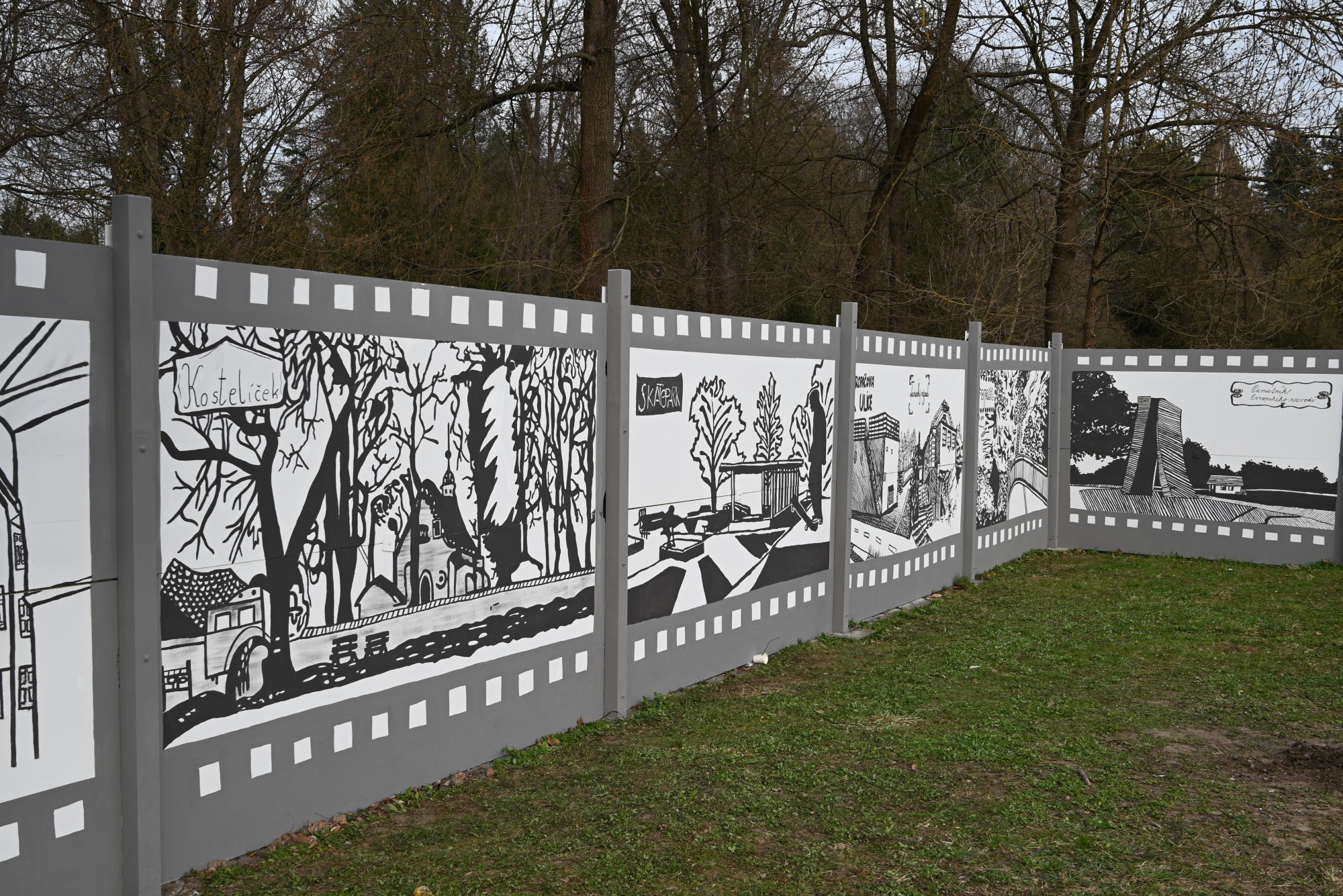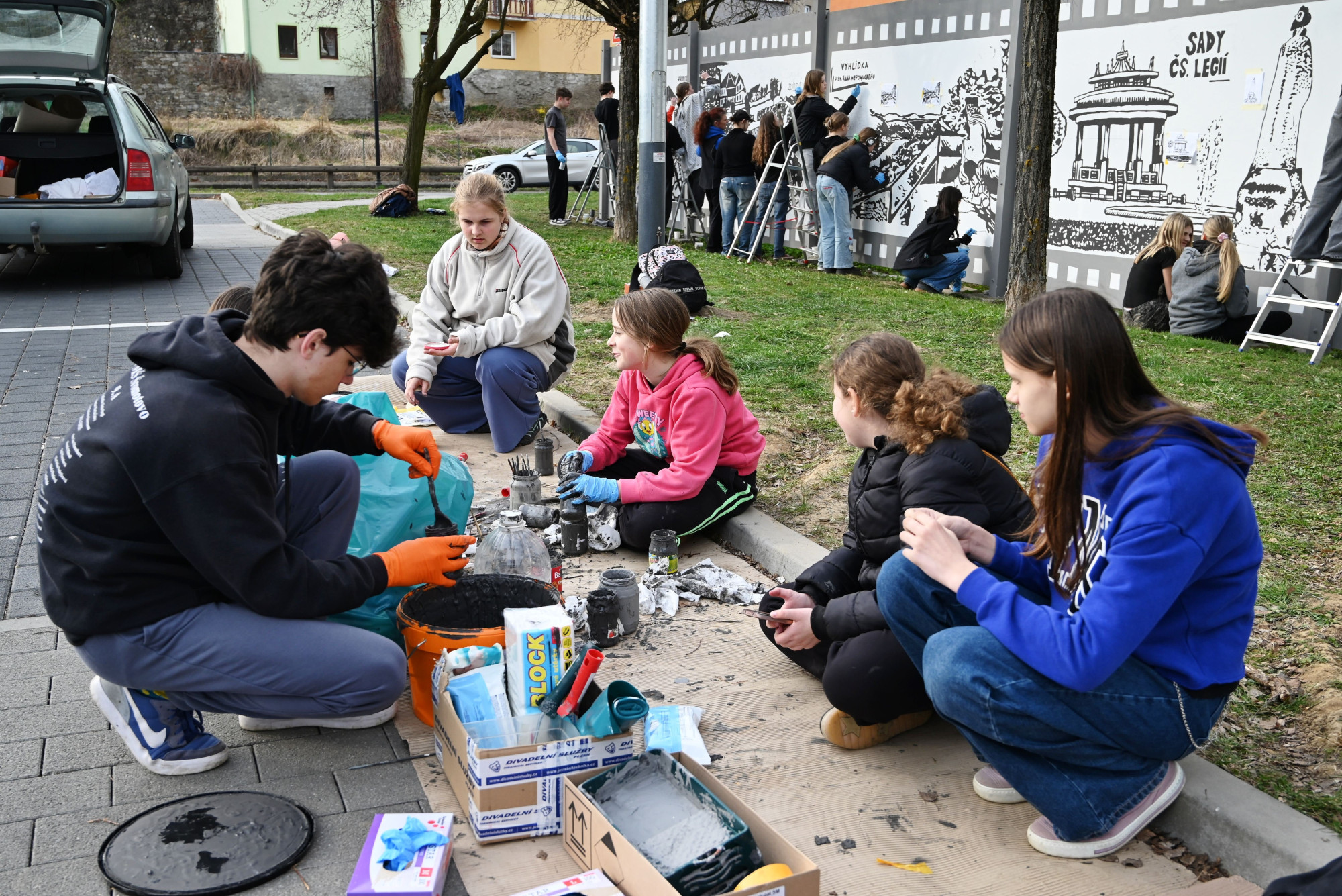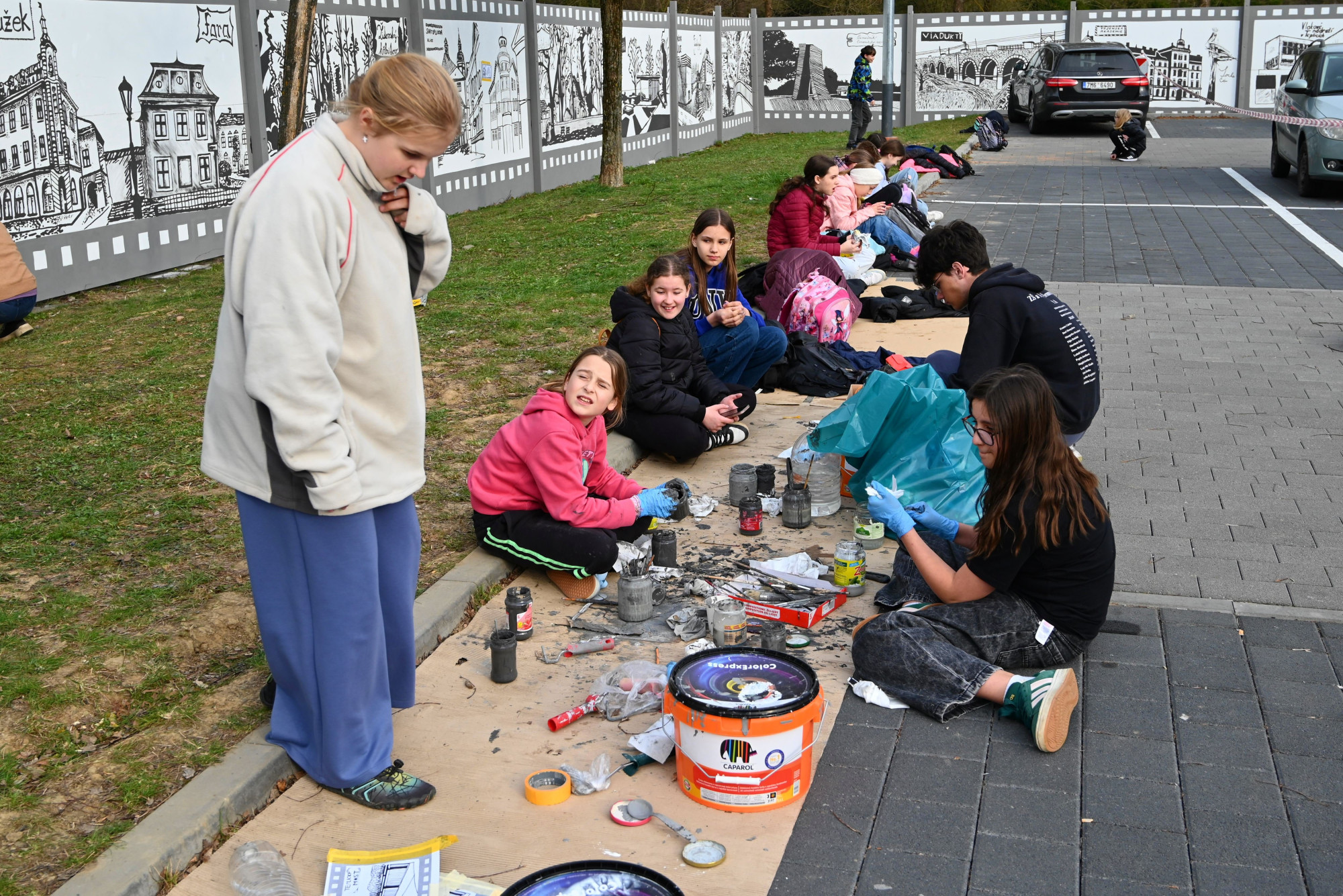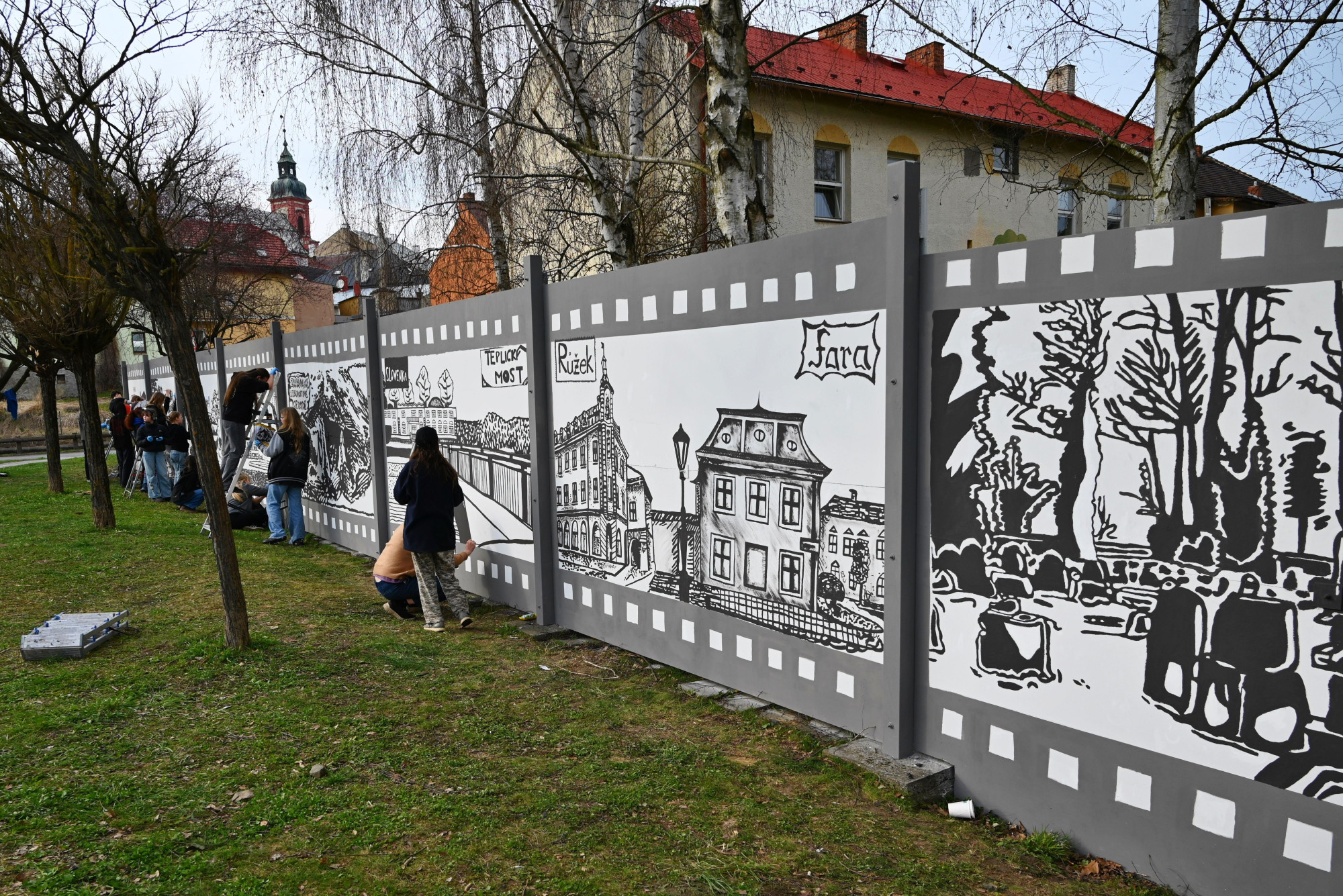 Děti z Hranic vytvořily venkovní galerii. Na zeď namalovaly zámek, propast nebo jeskyně