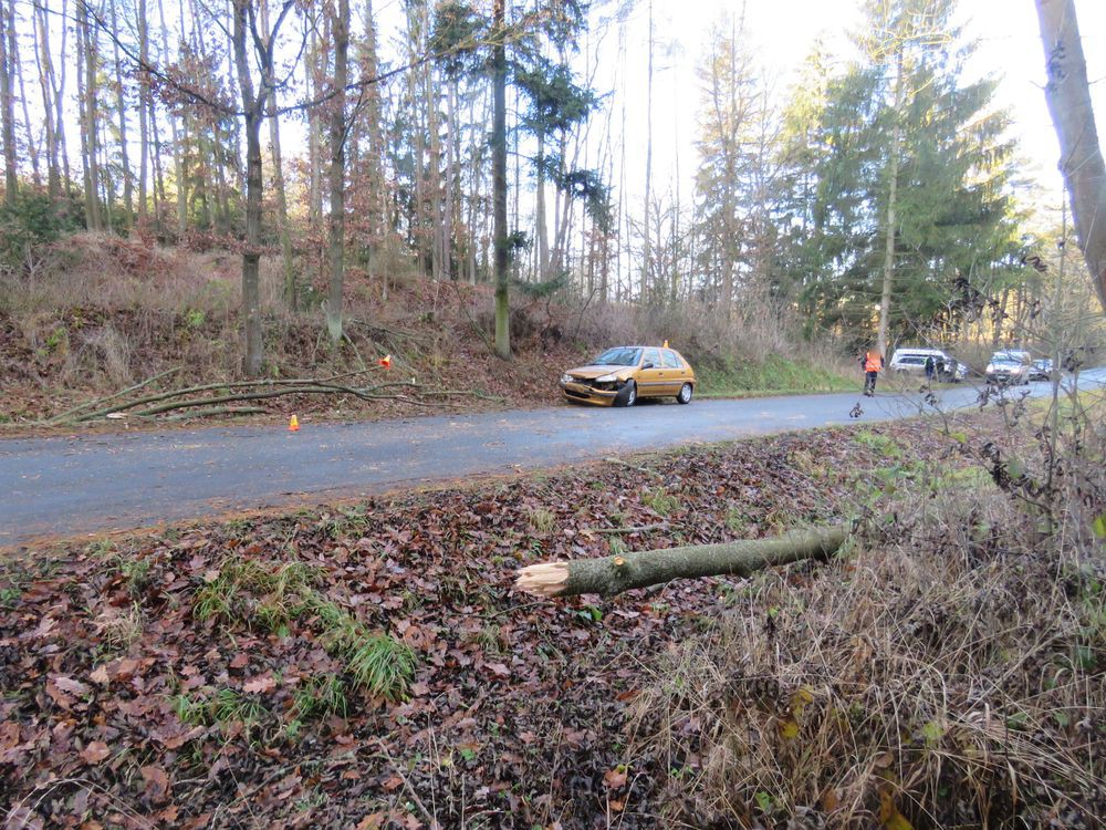 Vítr vyvrátil strom u cesty, ten spadl přímo na projíždějící auto
