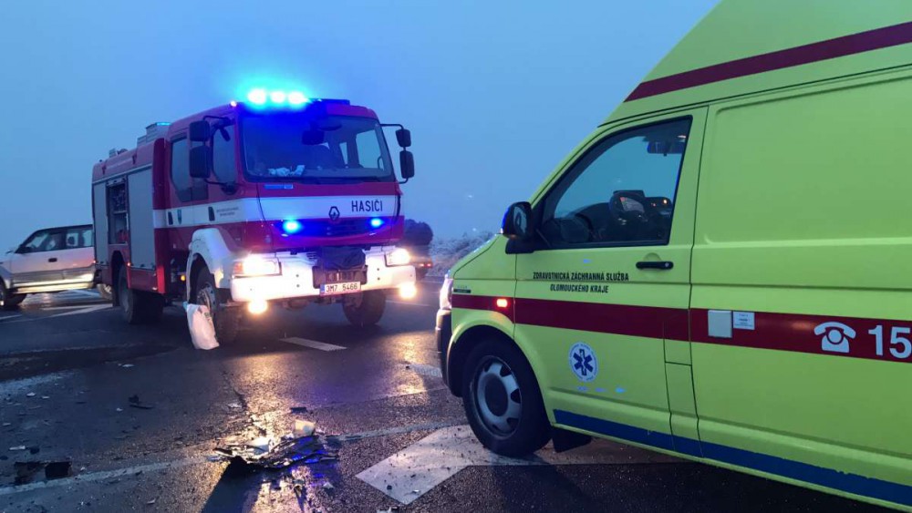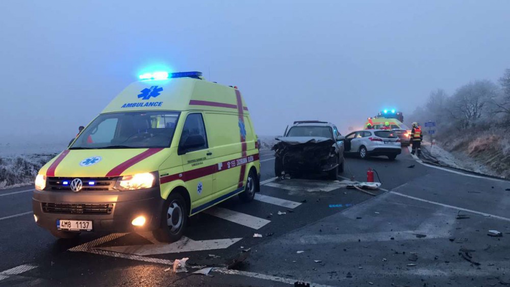 VIDEO: U Horní Loděnice se v neděli odpoledne srazila tři auta, na místě zůstaly zraněné osoby