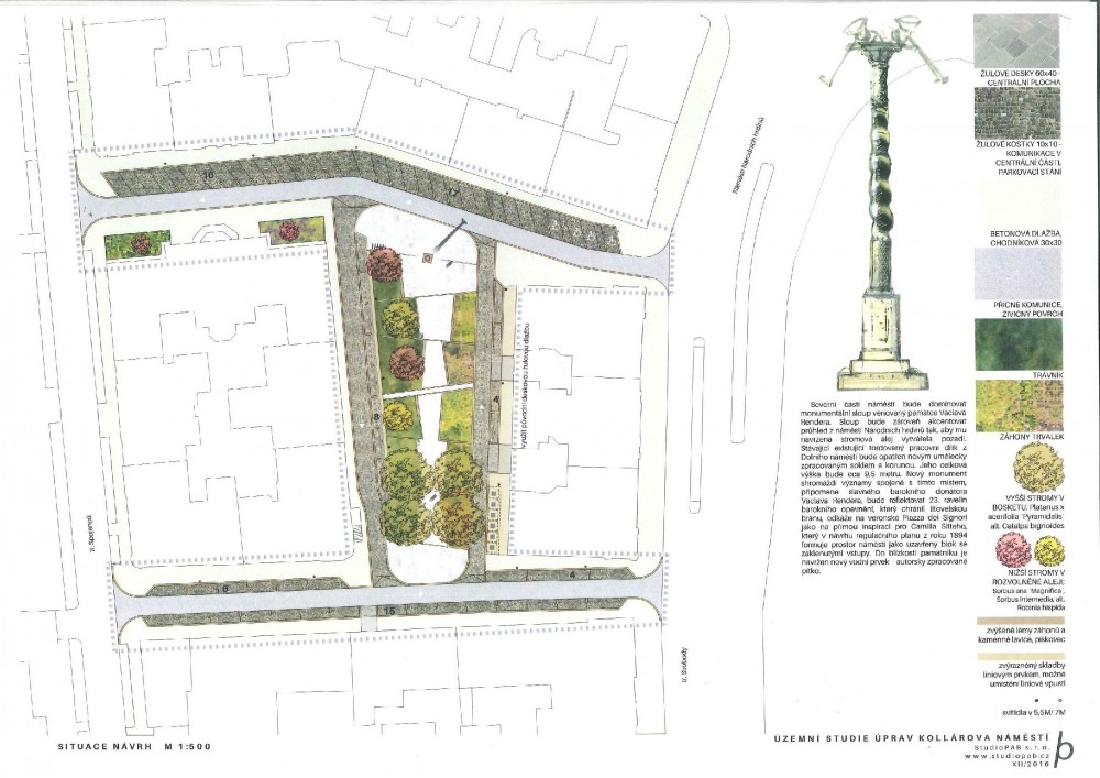 Změna Kollárova náměstí se blíží, územní studie počítá s úpravou zeleně i monumentálním sloupem