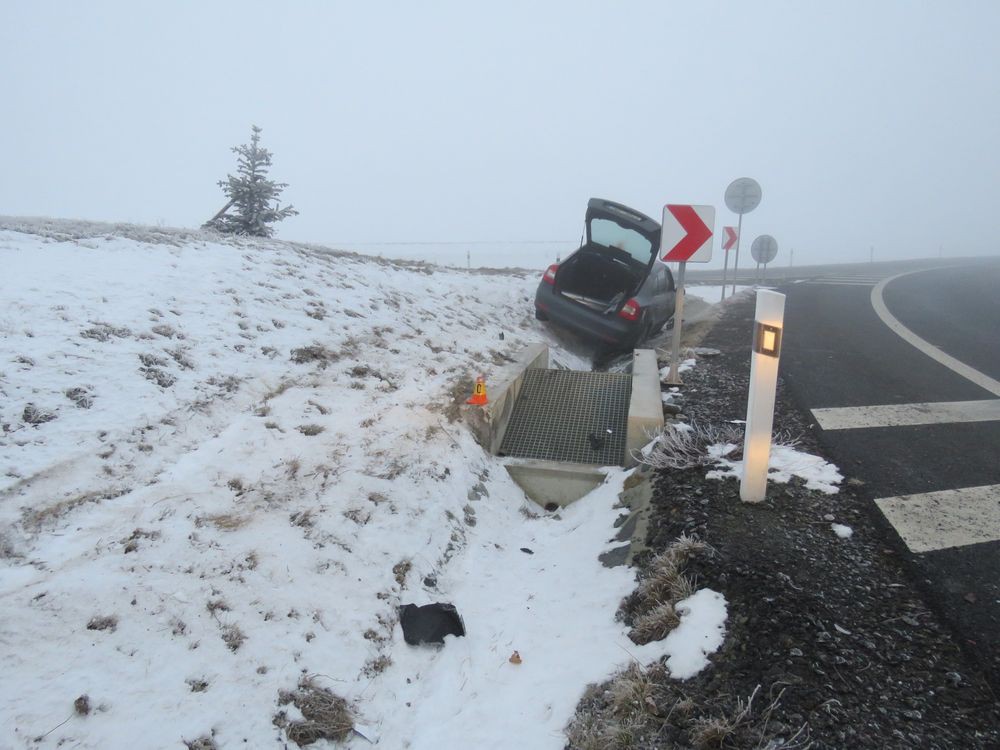 Mladý řidič nezvládl řízení svého auta na dálnici, skončil mimo silnici