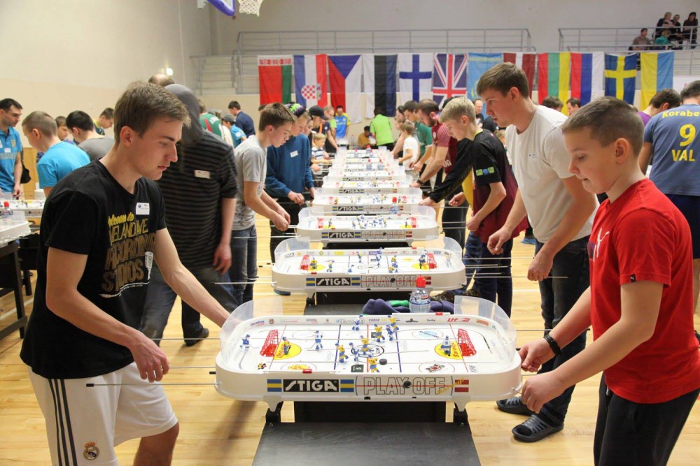 David Dvořáček (na fotce vlevo) během jednoho ze zápasů ve stolním hokeji