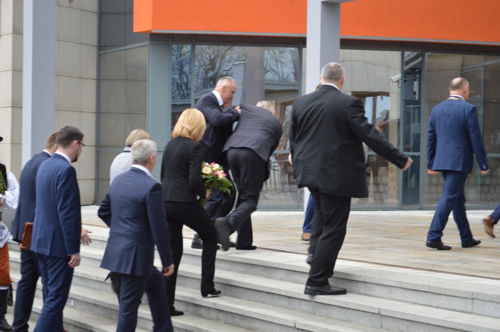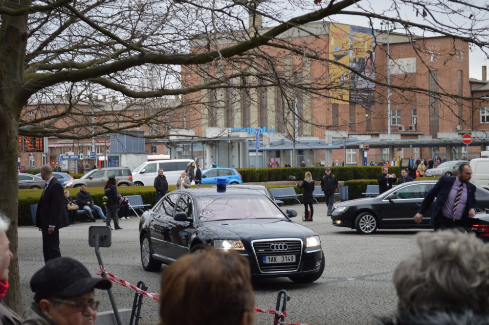 FOTO: Miloš Zeman přijel do Olomouce. Na schodech úřadu málem upadl, přišel na chvíli o botu