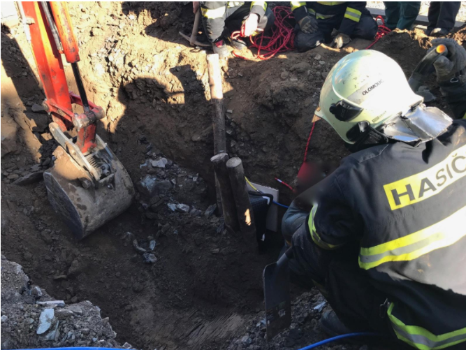 VIDEO: Dělníka zasypala ve výkopu zemina, skvělou práci při jeho vyproštění vykonali hasiči