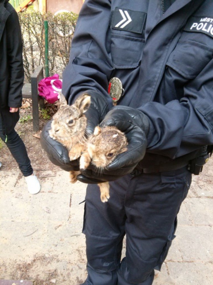 Strážníci úspěšně pochytali na dětském hřišti v Neředíně několik malých zajíčků