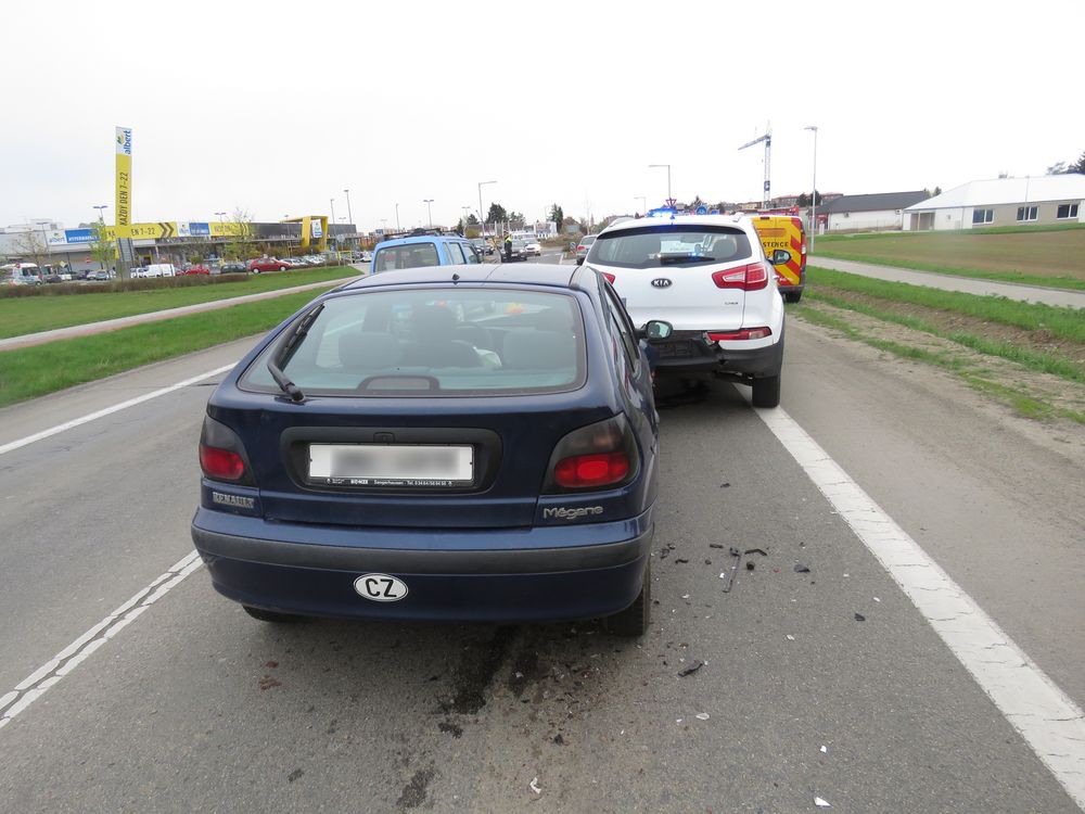 Seniorka přehlédla kolonu u kruhového objezdu a narazila se svým vozem zezadu do stojícího auta
