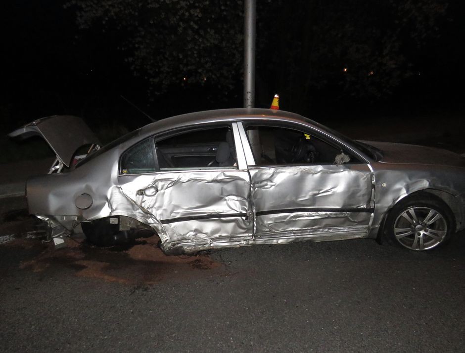 Řidič usedl za volant s téměř dvěma promile. Odneslo to protijedoucí auto a pouliční osvětlení