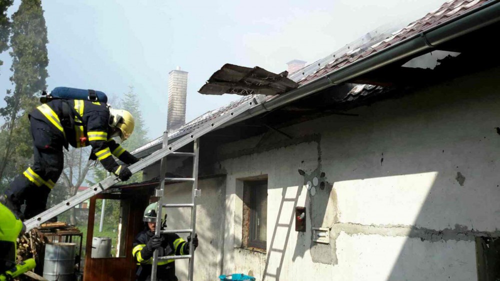 V Července hořela v sobotu odpoledne střecha domu. Vzplála sláma uložená na půdě