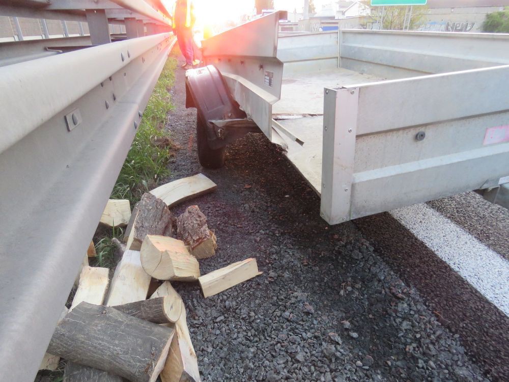 Řidič auta s přívěsným vozíkem na dálnici najel na uvolněný kanál. Náraz vozík vymrštil do vzduchu