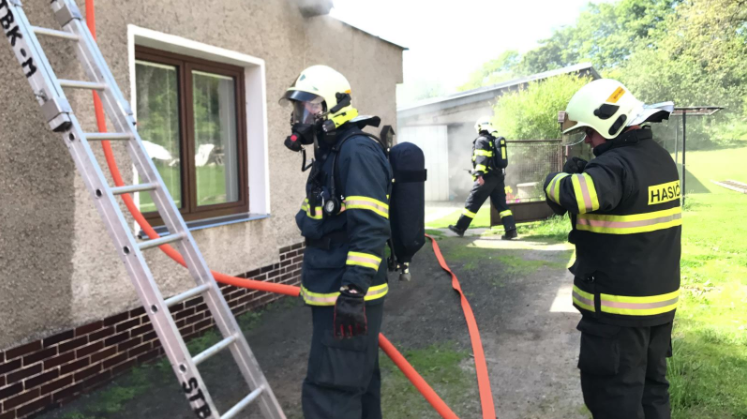 VIDEO: V Pohořanech hořel rodinný dům. Dva lidé se zranili, přiletět musel i záchranářský vrtulník