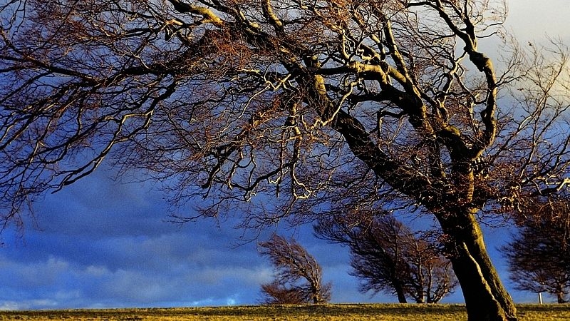 Silný vítr ohýbá stromy
