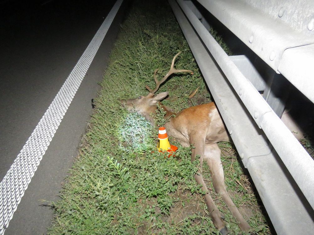 Auto na dálnici srazilo přebíhajícího jelena. Řidič nestihl ani zareagovat